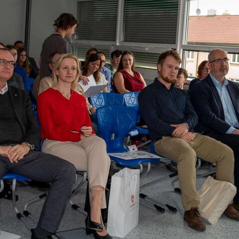 - všem našim studentům, kteří stáli za kamerami, fotoaparáty nebo u odbavovacího pultu a pomáhali s fotodokumentací, živým záznamem i živým přenosem, připravovali diplomy a nebo třeba "jen" připravovali prostory učeben.