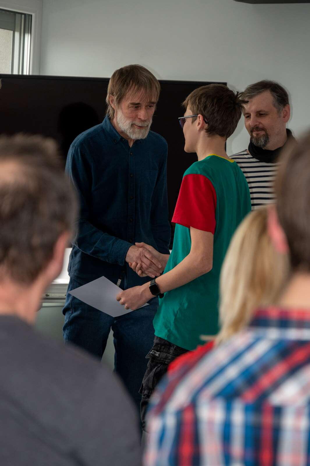 Když jsme diplomy ráno před předáváním přinesli z tiskárny, všechny měly grafické pozadí prvního místa - prostě jsme si nikdo nevšiml. Jednička na nich je naštěstí docela stylizovaná a v textu je pak umístění uvedeno. Takže jsme si řekli, že to není až takový průšvih a prostě rozdáme to tak. Ve 13:00 jsme ale zjistili, že se všechny diplomy opravily! Kdo za to může? Studenti: Jarda Petřek, Matěj Bureš a Filip Kopecký, kteří je všechny opravili, poslali narychlo do tiskárny, zajeli pro ně vlastním autem, ze svého to zaplatili a zkrátka to zařídili. - Divíte se, že mám rád naši školu? Tady se prostě věci tak nějak samy dějí.