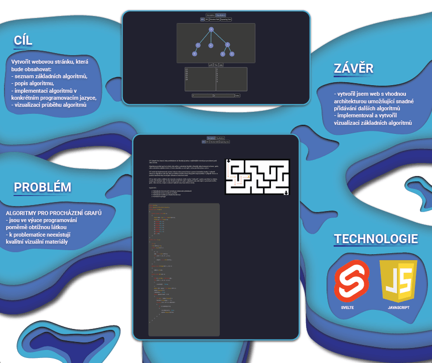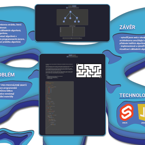 Martin vytvořil webovou stránku s popisem a ukázkou implementace několika algoritmů pro procházení grafů v jazyce C# včetně jejich vizualizací. Učební pomůcka najde využití při výkladu algoritmů studentům programování.