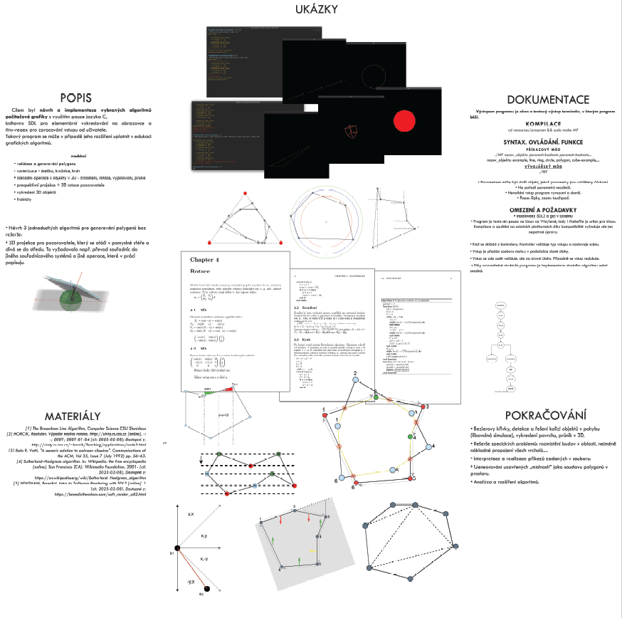 Adam vytvořil a optimalizoval algoritmy v programovacím jazyce C pro vykreslení a práci se základními geometrickými útvary: