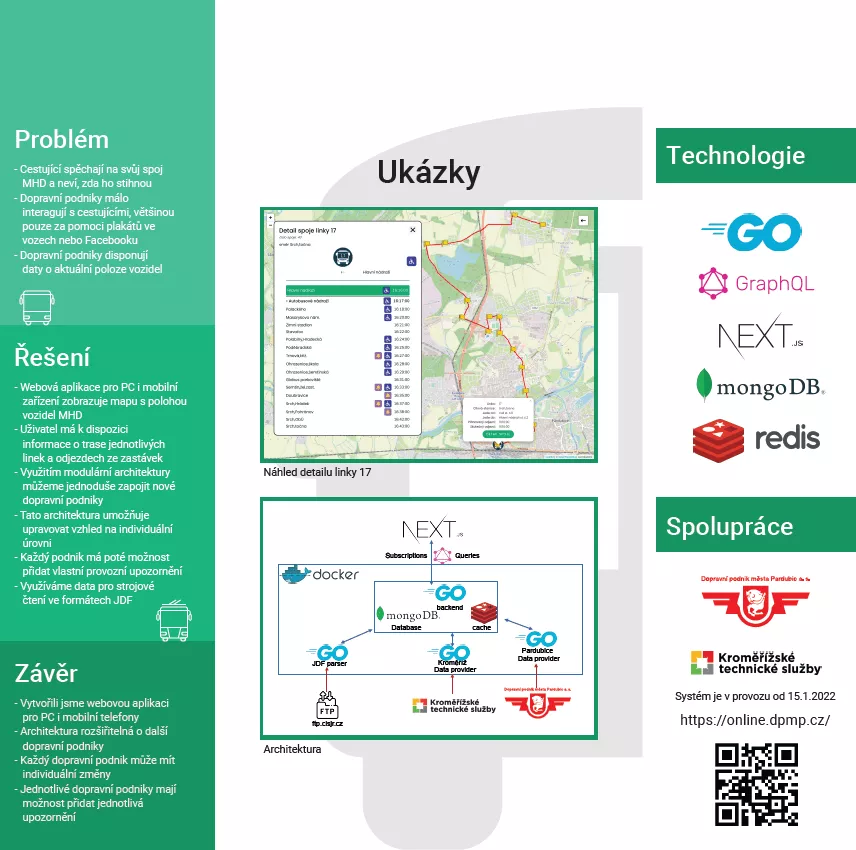 Pokud čekáte na zastávce a autobus pořád nejede, můžete se podívat do aplikace na mapu, kde se spoj právě nachází. Aplikace je od roku 2022 začleněna do portálu Dopravního podniku města Pardubice a můžete ji najít ZDE: https://online.dpmp.cz/. Stejnou službu využívá i Dopravní podnik Kroměříž a nyní se do ní integrují i autobusy dopravce Arriva.