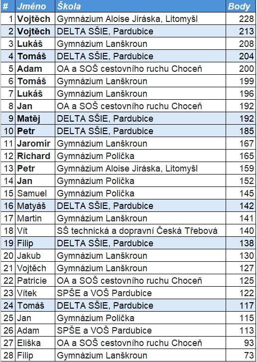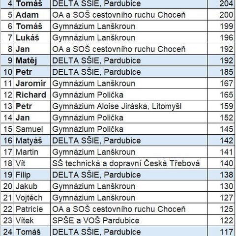 4 studenti DELTY se umístili v TOP10 v Pardubickém kraji.