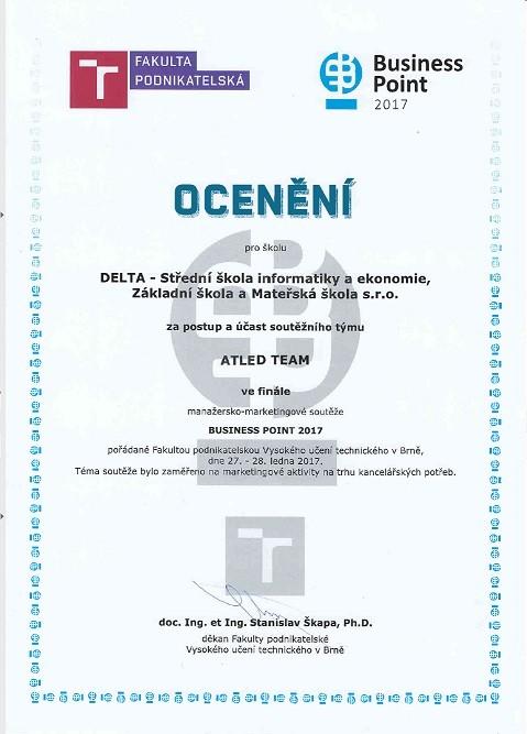 I letos se tým ATLED (zkuste číst pozpátku) v drobně pozměněném složení (letos: Patrik Bednář, Jan Doležel, Tomáš Faltejsek, Tomáš Havránek a Míra Varga) probojoval až do finále letošního BusinessPointu. Zde patřil k nejmladším týmům (už jenom jeden další tým byl z druhého ročníku, ostatní byli maturanti nebo třeťáci). Přesto se dokázal probojovat až těsně pod stupně vítězů.