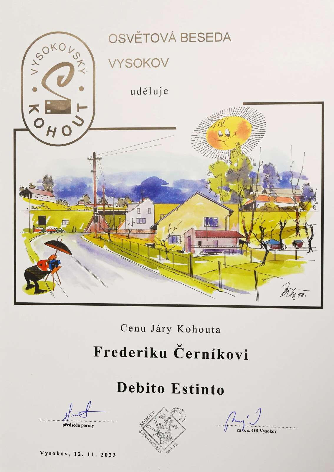 Frederik Černík získal za svůj film "Debito Estinto" ceny již na třetím filmovém festivalu, tentokrát na Vysokovském kohoutu.
