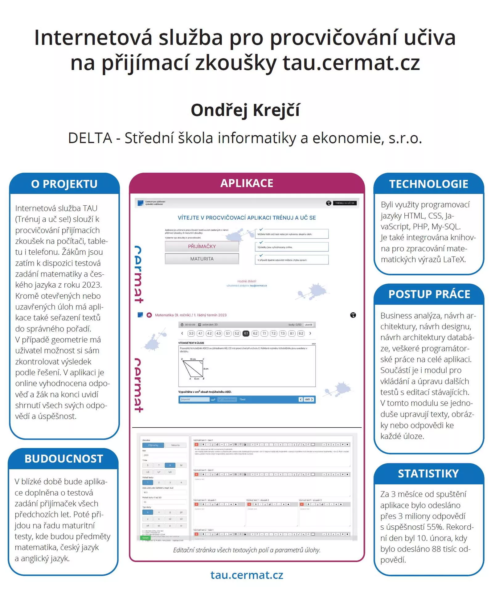 Internetová služba pro procvičování učiva na přijímací zkoušky tau.cermat.cz, autor: Ondřej Krejčí