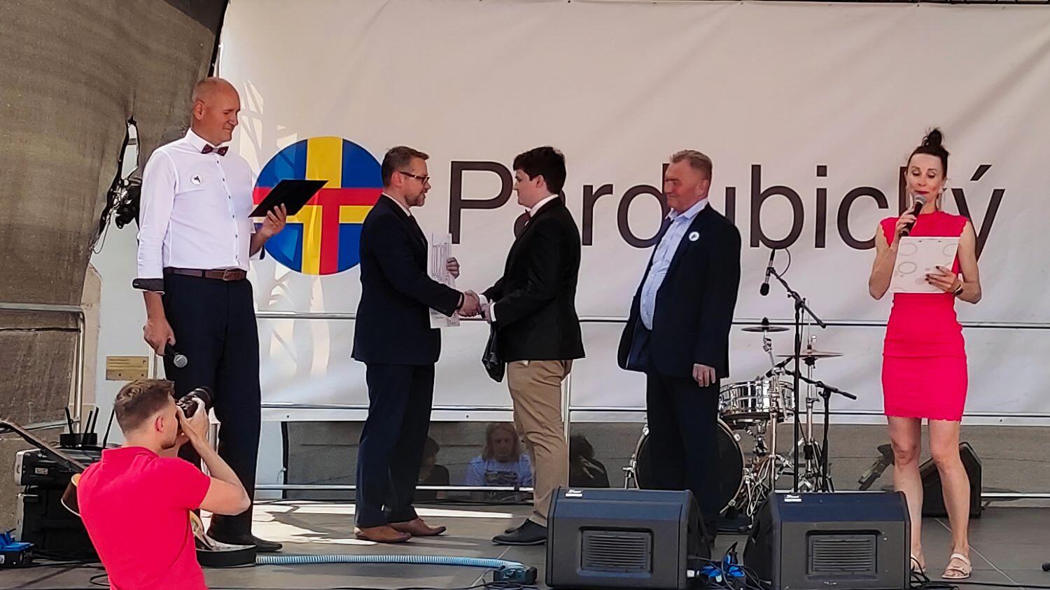 Ve středu 15.6. se na pardubickém zámku konalo předávání ocenění Mladý talent Pardubického kraje za rok 2021 pro nejúspěšnější žáky středních a základních škol. Mezi oceněnými v technickém oboru byli i Vít Falta a Matěj Půhoný, naši dva loňští absolventi. Oba ocenění obdrželi za svou "celoživotní práci" a skvělé výsledky především v oborových soutěžích – mezi ty nejcennější patří Vítkovo 2. místo v celostátním kole SOČ a Matějovo 2. místo v celostátním kole Soutěžě v programování MŠMT. Oba pánové společně vytvořili projekt BurzaŠkol.online, který vloni využily tisíce žáků základních škol při volbě střední školy.