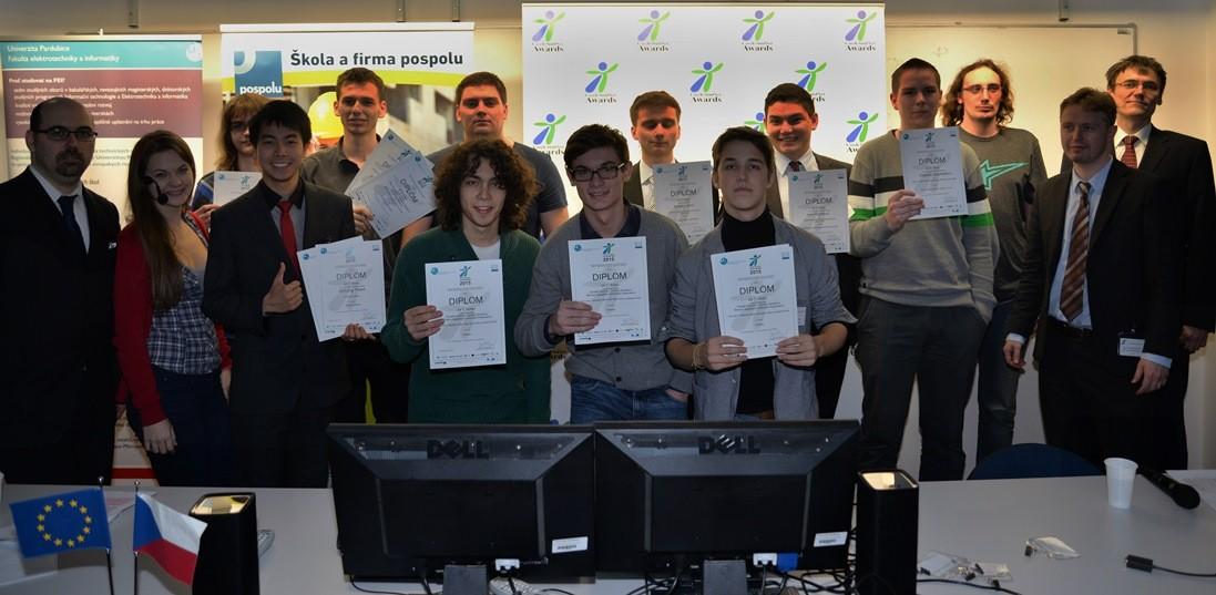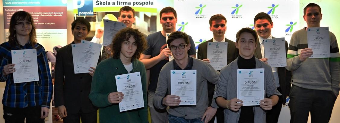 Společná fotka vítězů 1. ročníku Czech StudNET Awards 2015 v Pardubicích (foto: archiv DELTA škola)