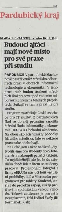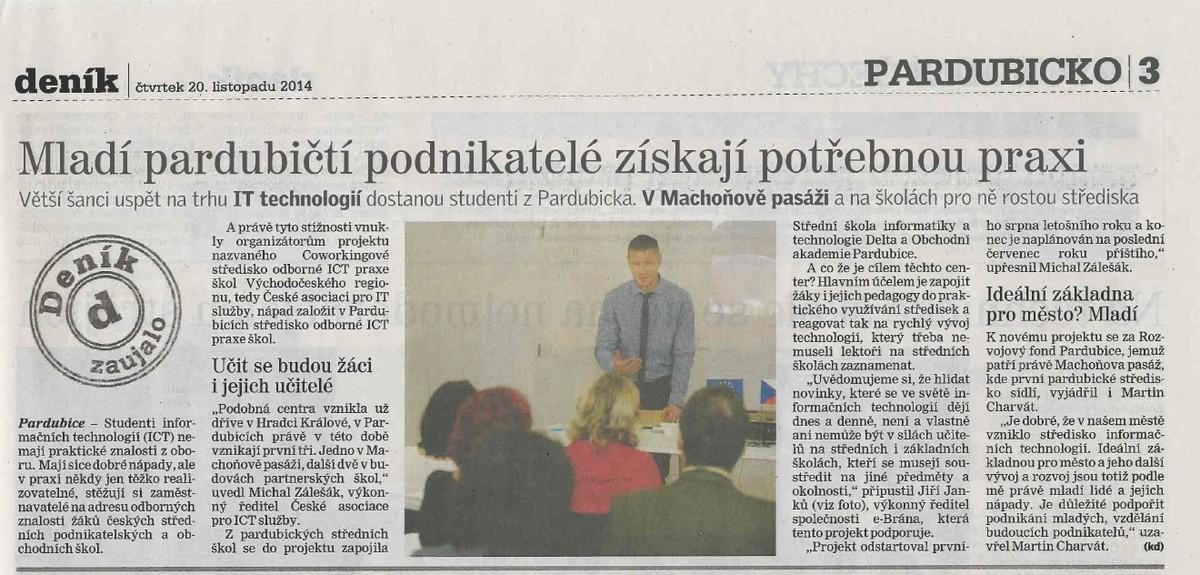 Projekt zastřešuje Česká asociace pro IT služby. Z pardubických škol se do něj zapojila Střední škola informatiky a ekonomie DELTA a Obchodní akademie.
