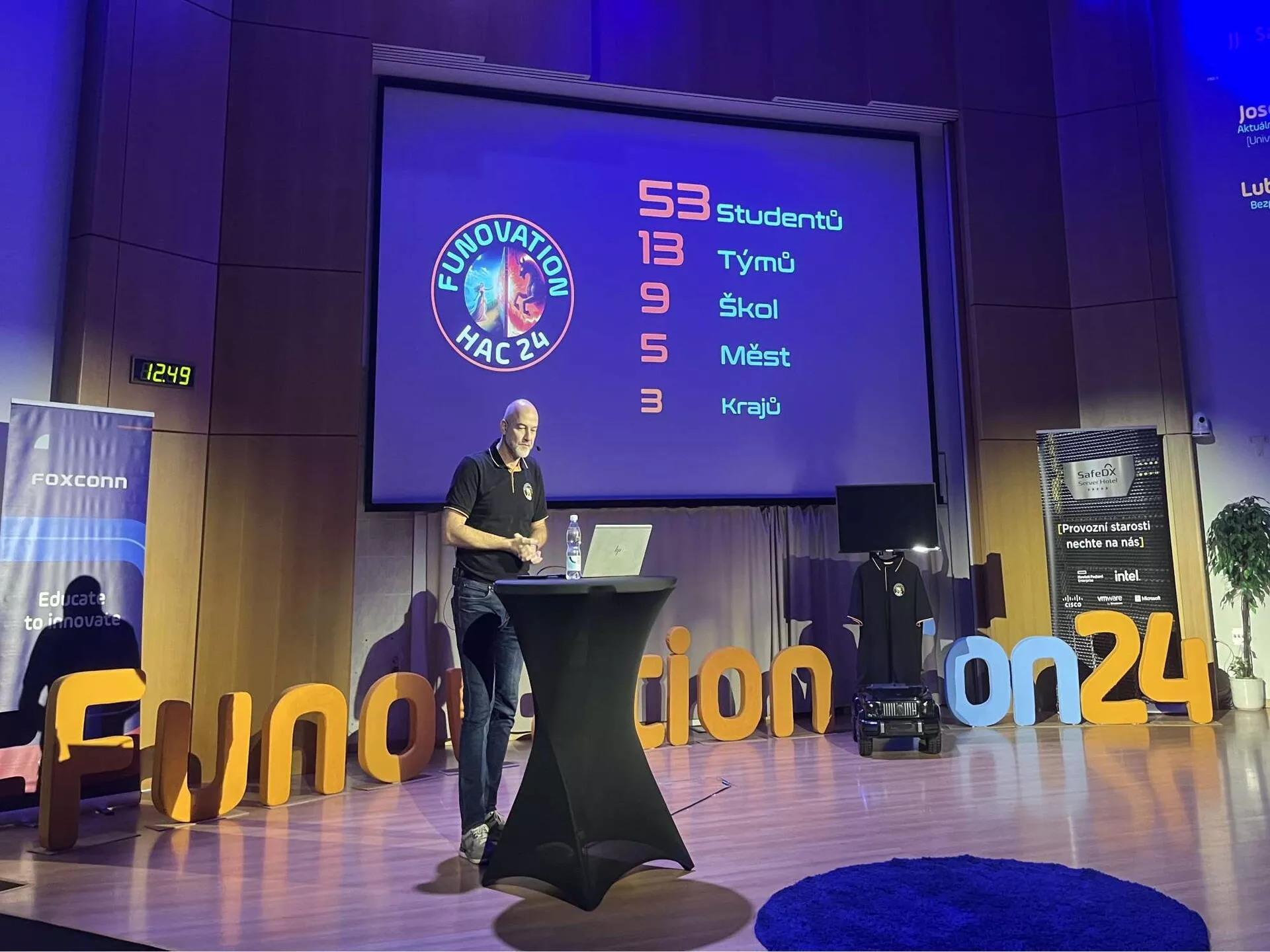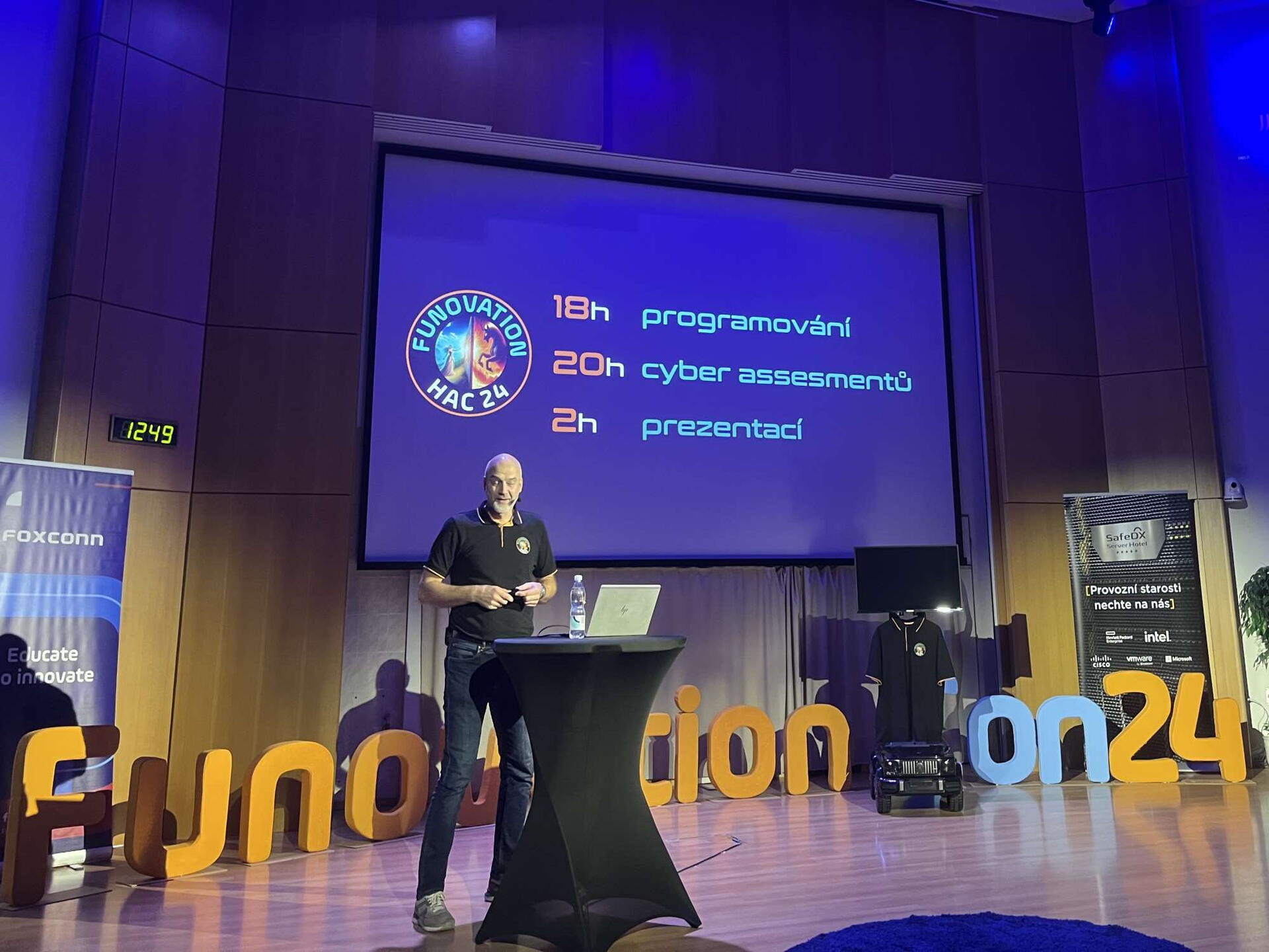 Slavnostní vyhlášení vítězů hackathonu proběhlo tento čtvrtek v aule Univerzity Pardubice na konferenci Foxconn Funovation Con24, která letos byla zaměřená na oblast Cyber Security. Prvním z prezentujících byl doc. Mgr. Josef Horálek, Ph.D. z Univerzity Hradec Králové, který však učí i u nás na DELTĚ mimo jiné Linux a bezpečnost. Zlatým hřebem celé konference byl však Spajk z BOIT Cyber Security, který nám představil "hru na vojáky pro velký kluky" = souboje modrých a červených týmů, zaplakal nad zoufalou úrovní zabezpečení serverů státní správy a k dobru přidal i historku o vykradeném kasínu přes nezabezpečený "chytrý" termostat v akváriu ředitele - jsou zkrátka věci, které bezpečáky fakt pobaví.