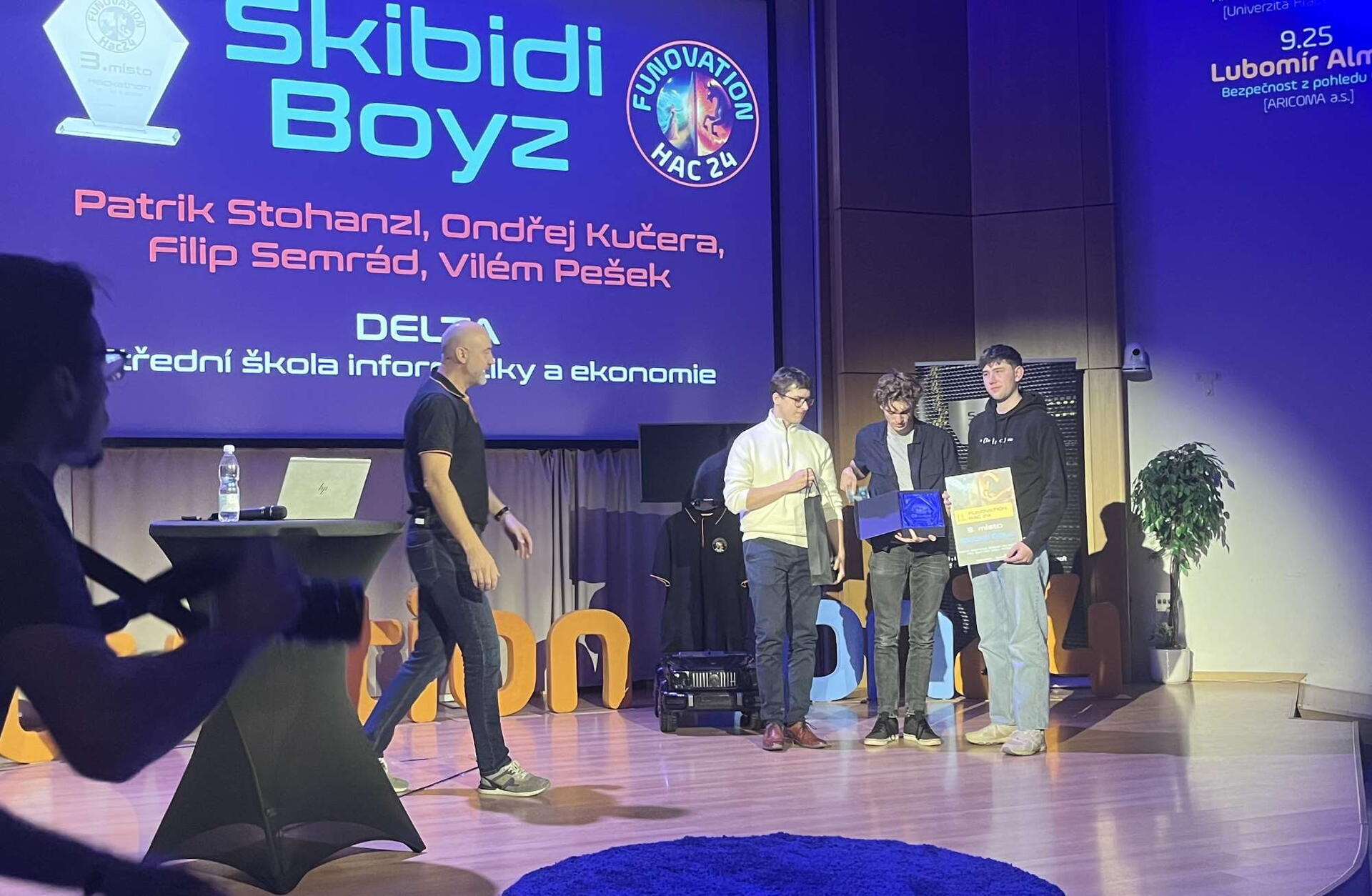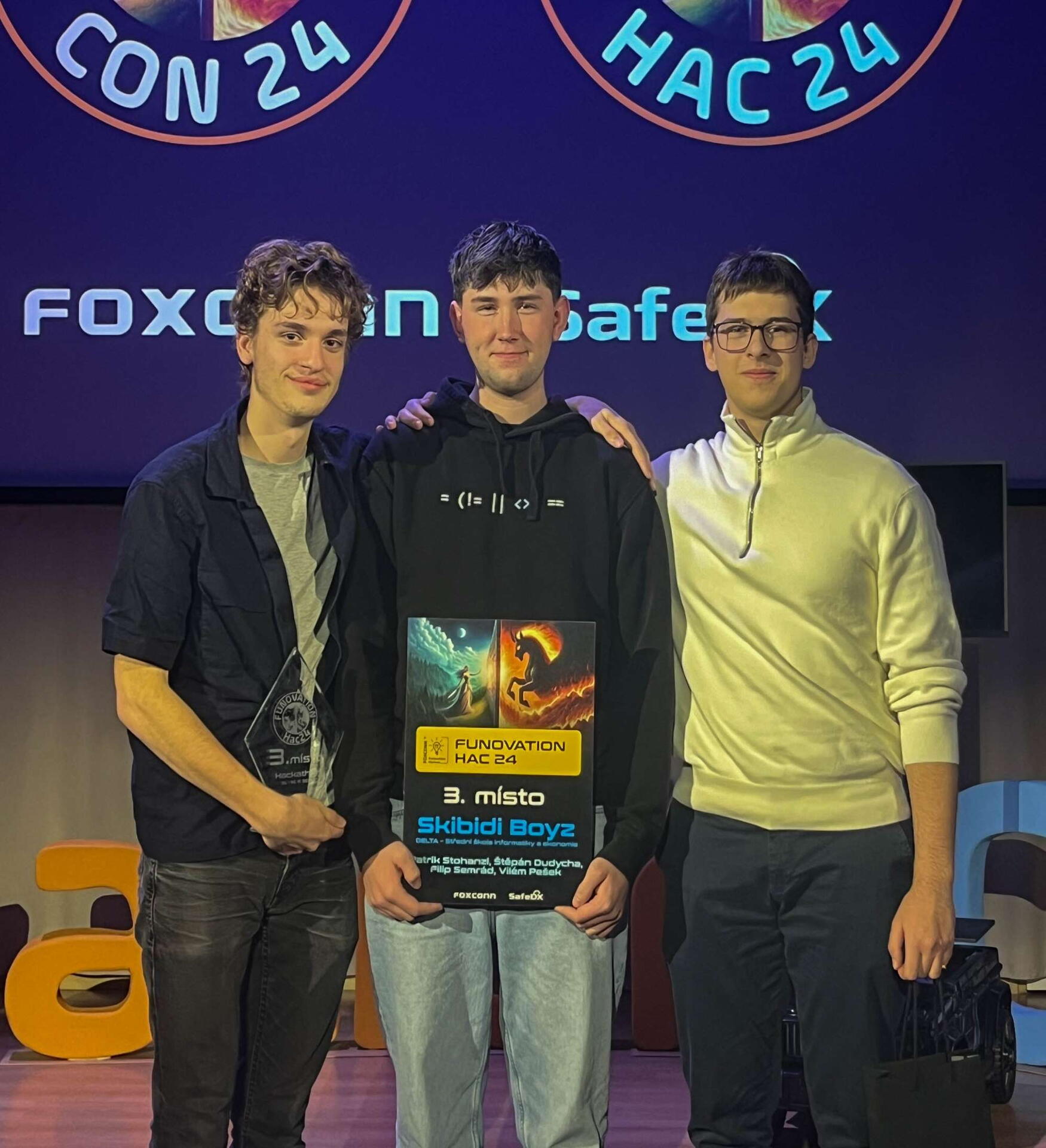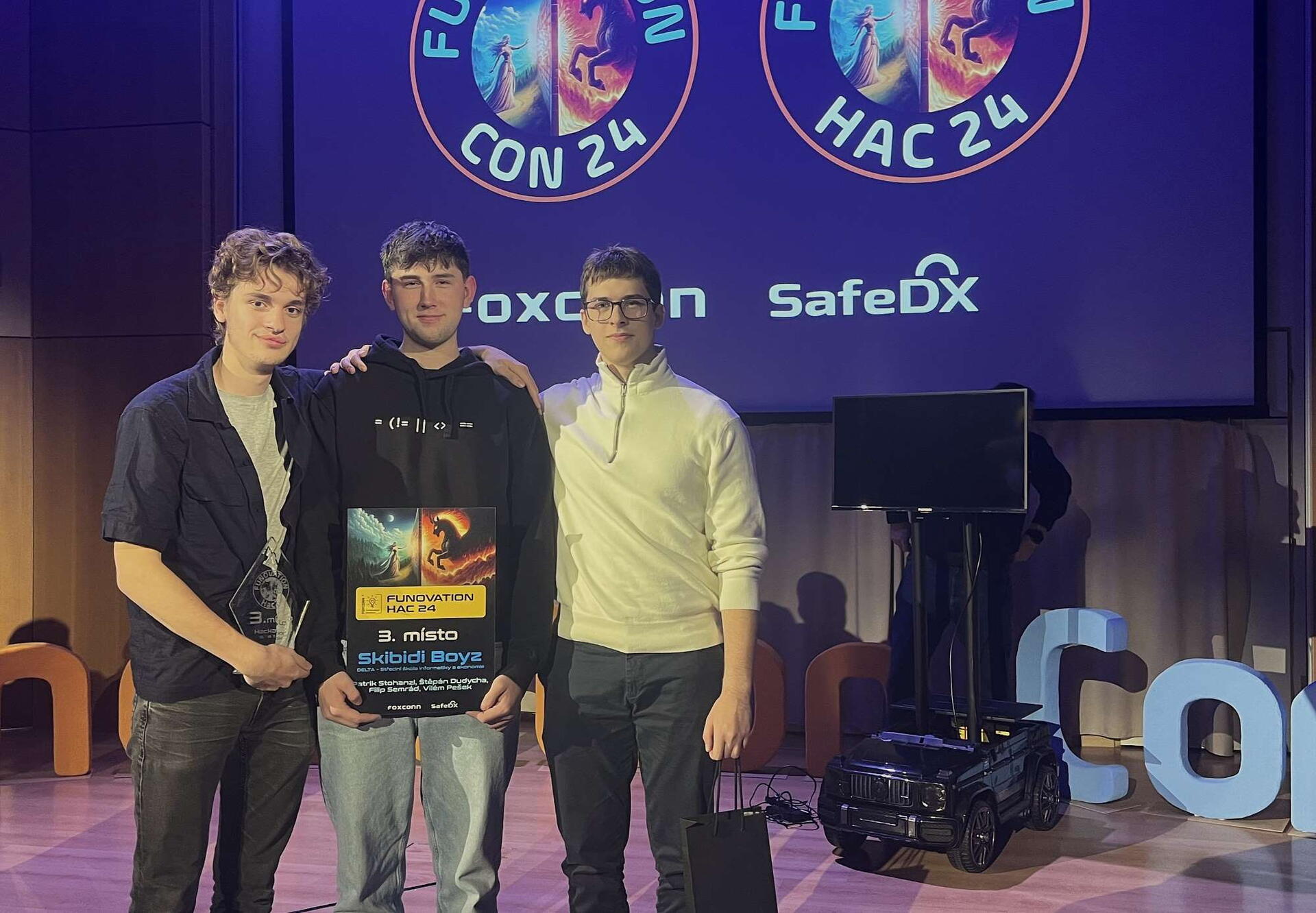 Na letošním hackathonu Foxconn Funovation Hac24 získal tým studentů Skibidi Boyz ve složení Patrik Stohanzl, Filip Semrád a Štěpán Dudycha 3. místo v konkurenci 13ti týmů. Navázal tak na čerstvý úspěch z minulého týdne, kdy na hackathonu Pardubického kraje získali prvenství: v kategorii Nejlepší inovativní řešení a navíc i diváckou cenu Miláček publika.