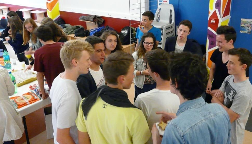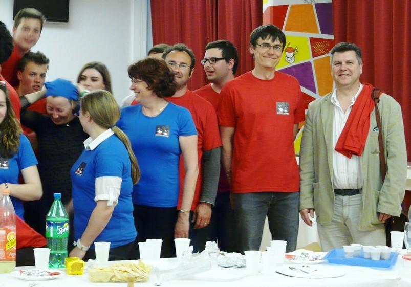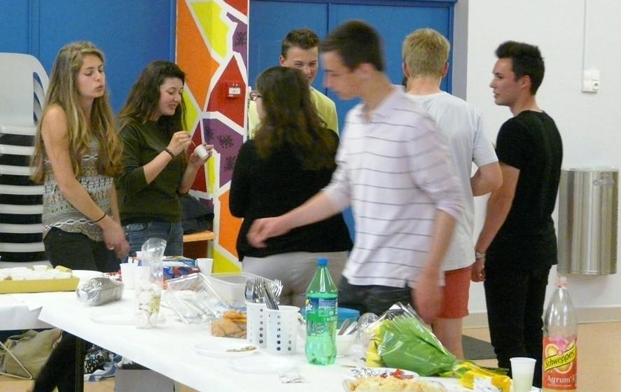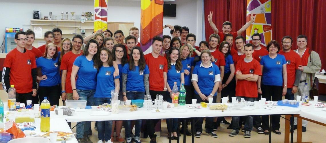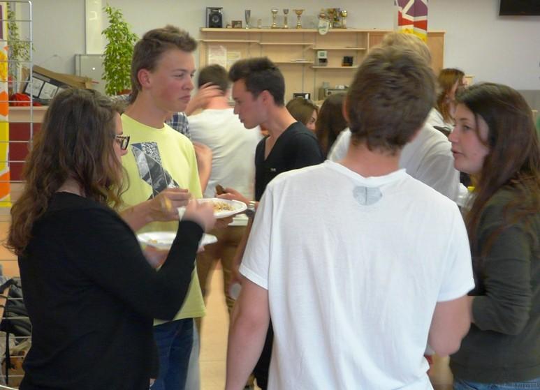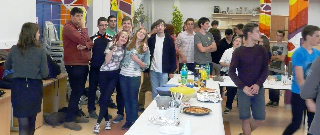 Odpoledne jsme měli volno - čas na sbalení, případné nakupování a přípravu na večerní párty. V sedm vypukla párty a docela se vydařila. Konala se v jejich školním klubu - moc pěkně zařízeném. Francouzi připravovali veškeré občerstvení a i Frederic (učitel) ukuchtil výborný slaný koláč. V půlce přišel i pan ředitel Philippe Donatie, který ten den jel do Paříže a zase zpátky. Opravdu jsem obdivoval jeho hrdinství a profesionalitu, po 1000km za volantem by mne skutečně nikdo na žádnou párty nedostal ani párem volů. Bylo to od něj velice milé. Předali nám drobné dárky - "pamětní desku" s názvem projektu (kterou dělali jejich učni - při škole je i učiliště) a projektová trička. Pak se šlo ještě na "one drink" do hospody na náměstí. Toho jsem se tedy trošku obával, ale skutečně zůstalo pouze u toho jednoho drinku a pak se šlo spát.