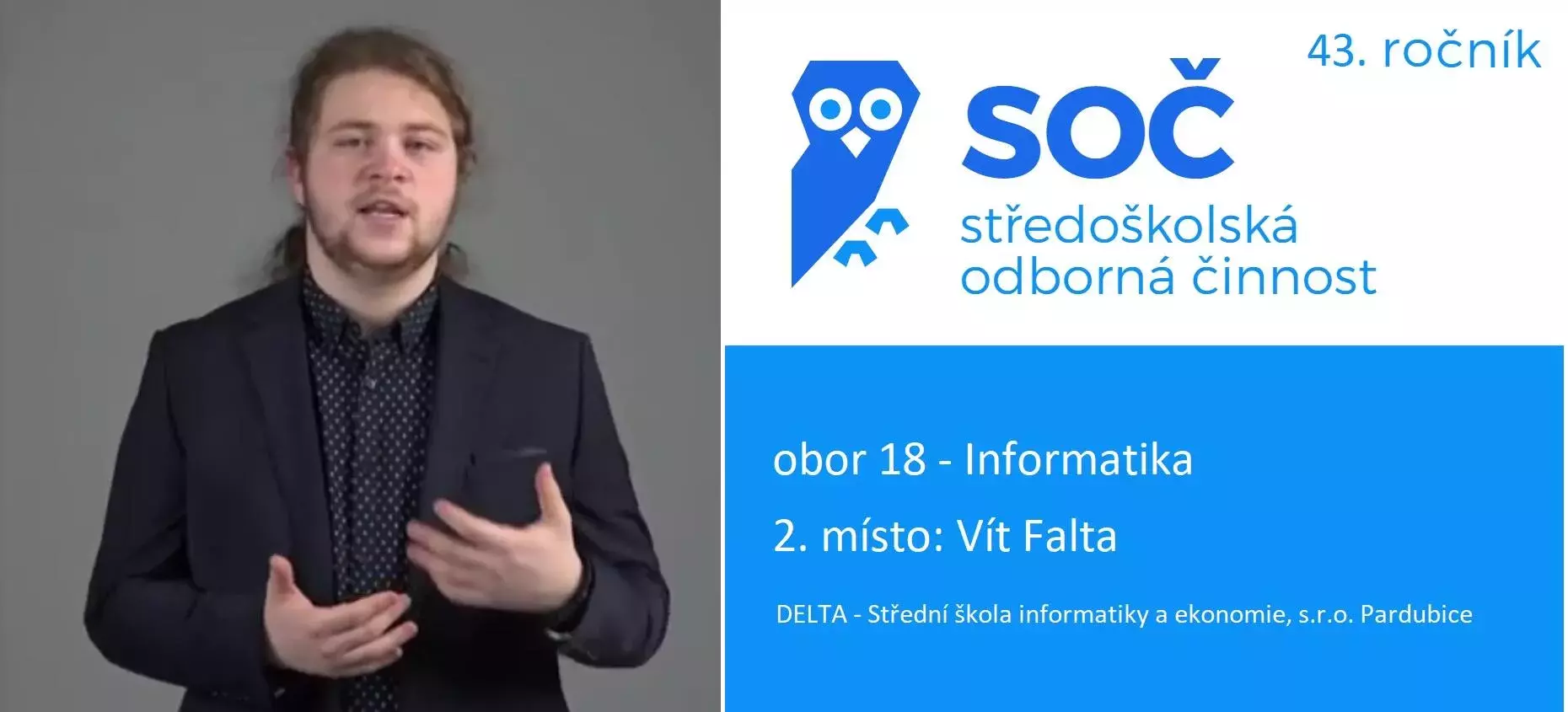 S projektem BurzaŠkol.Online zvítězil v krajském kole Středoškolské odborné činnosti v oboru Informatika a prodloužil tak hegemonii naší školy už na 4 roky. (V posledních 4 letech krajské kolo v oboru Informatika nepoznalo jiného vítěze než studenta z DELTY). V celostátním kole obsadil celkové 2. místo.