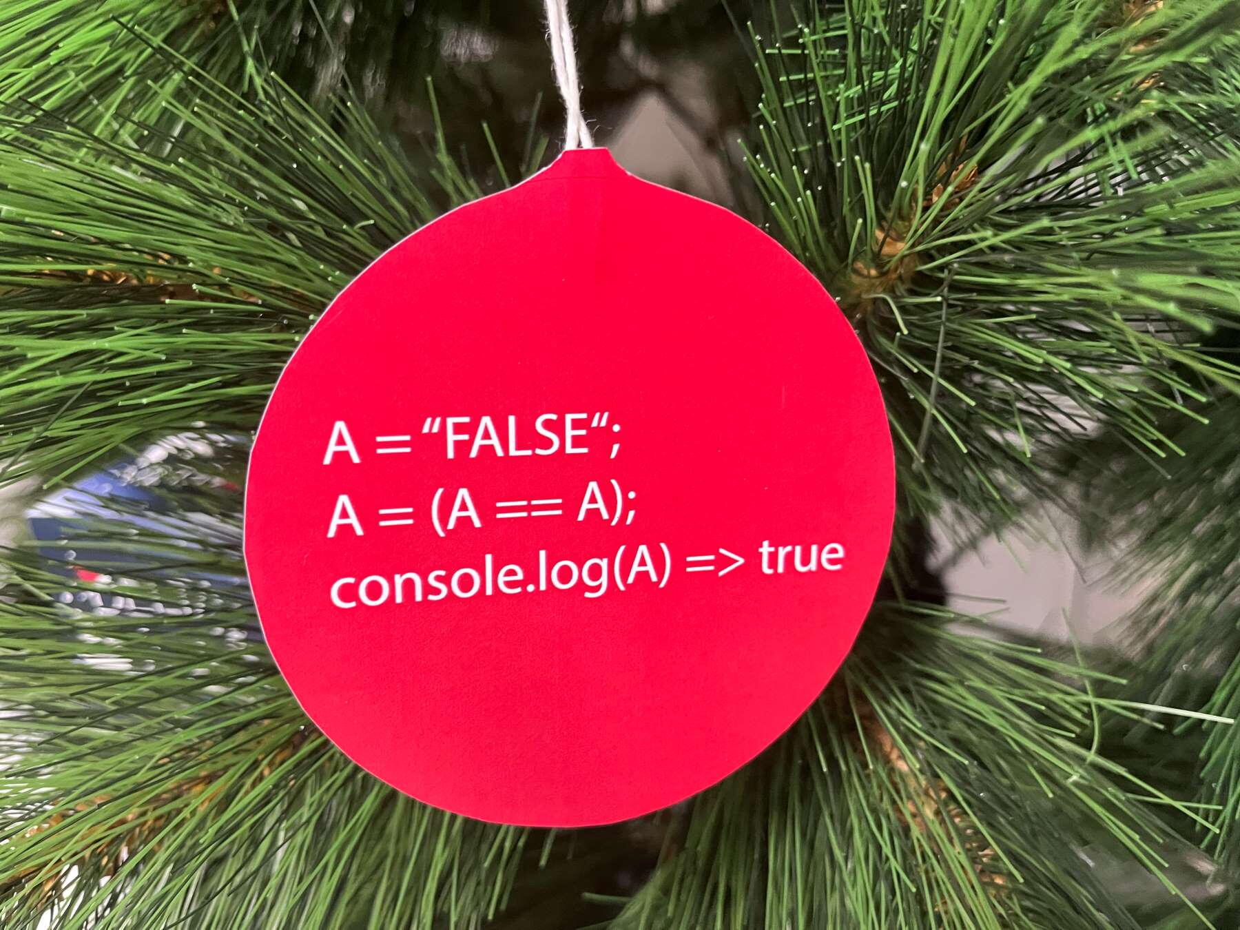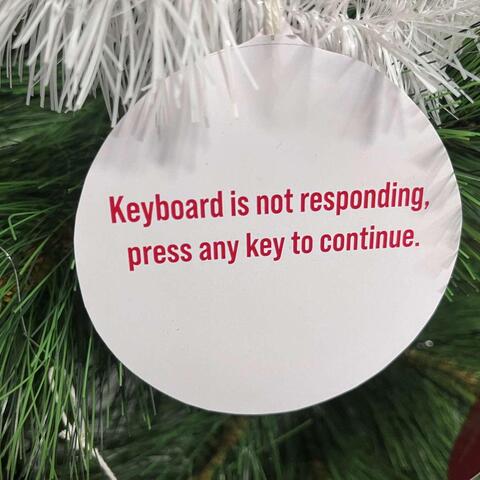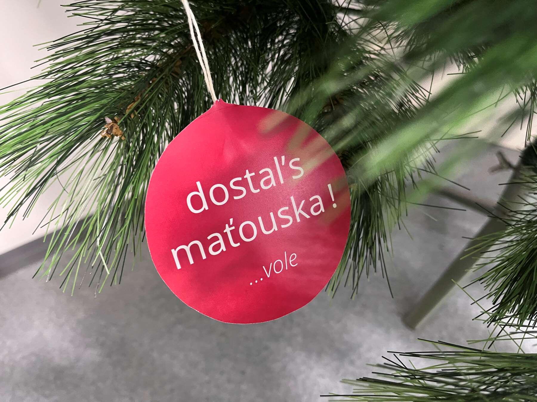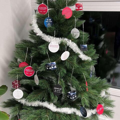 Někdo musel najít ve skladu stromeček - už to musel být docela výkon, posbírat všechny vtípky na ozdoby, ozdoby vytisknout, nařezat, pověsit.