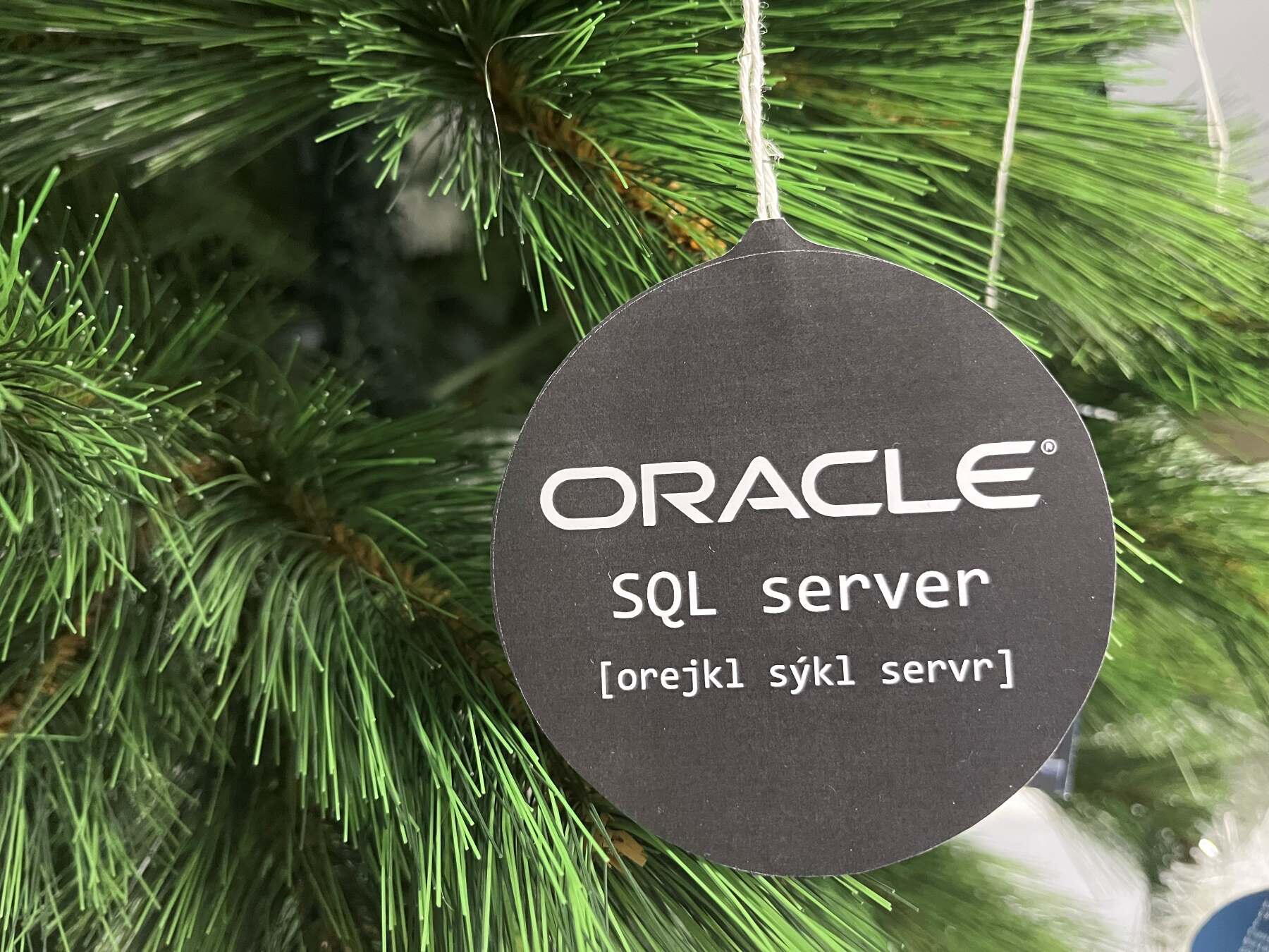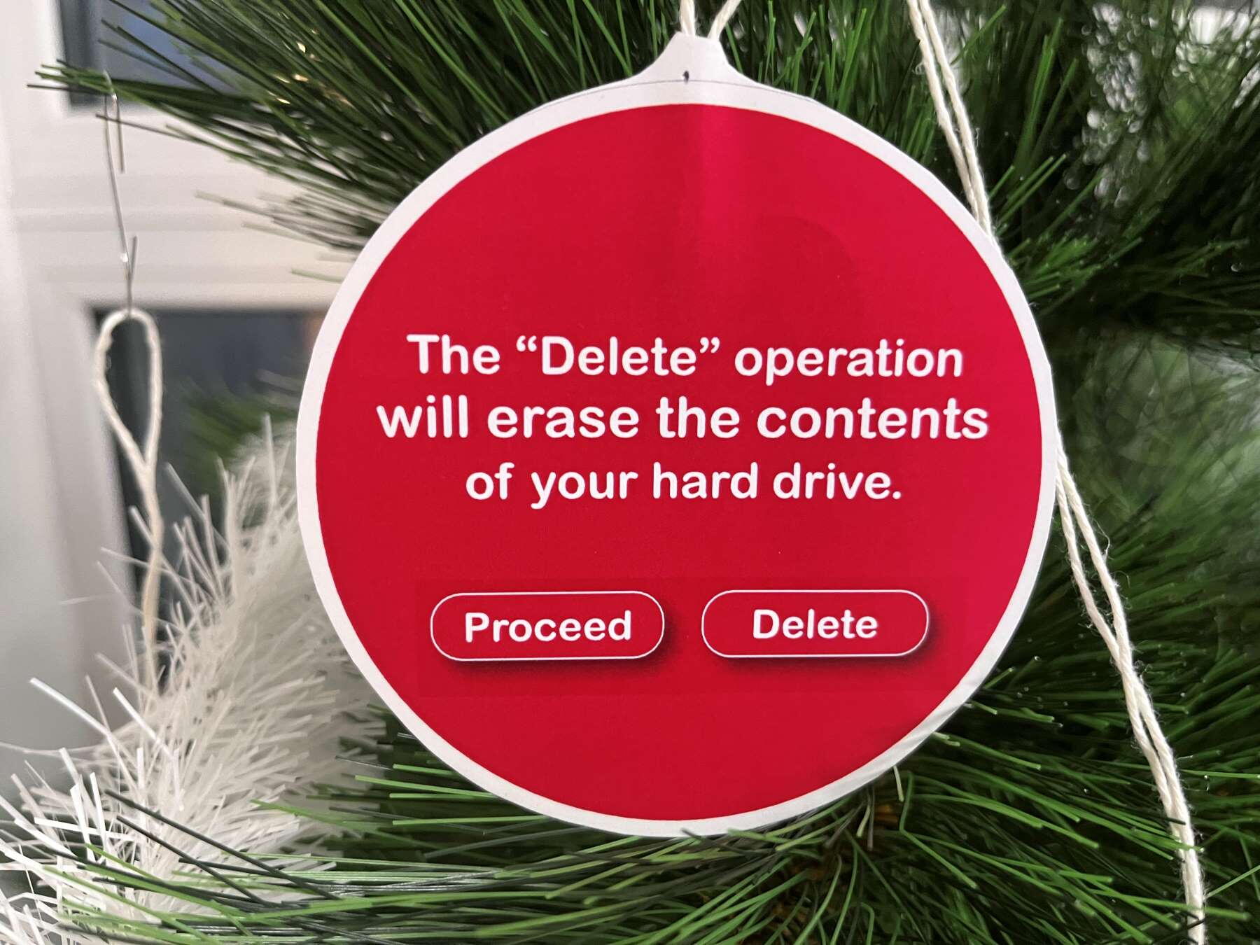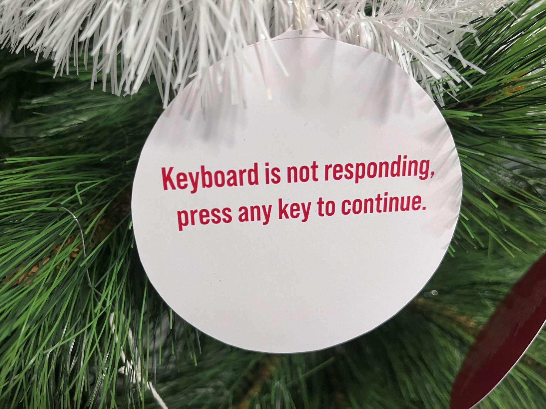 Někdo musel najít ve skladu stromeček - už to musel být docela výkon, posbírat všechny vtípky na ozdoby, ozdoby vytisknout, nařezat, pověsit.