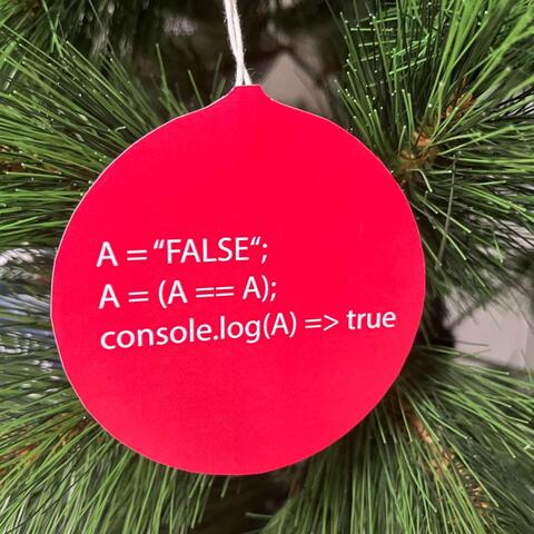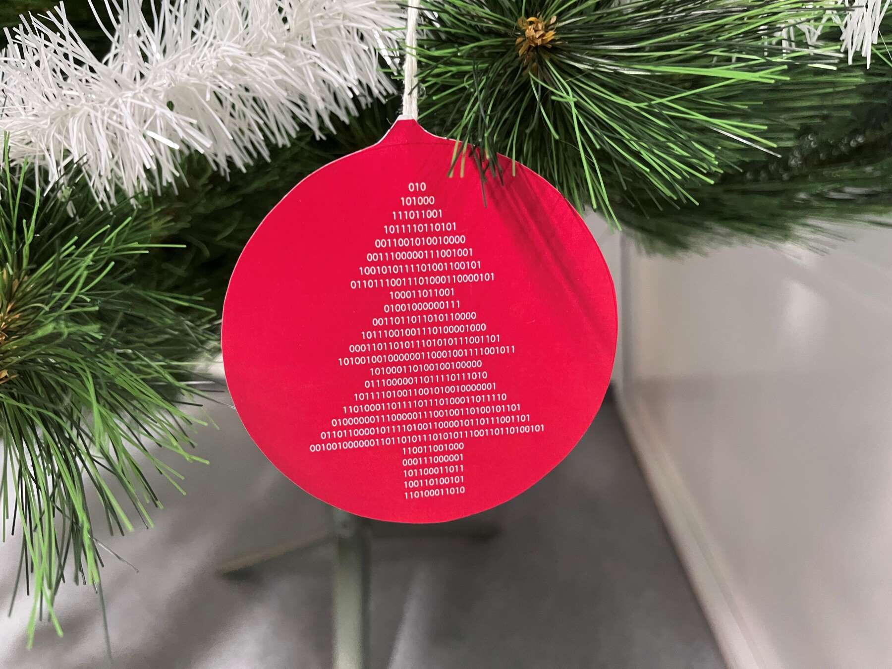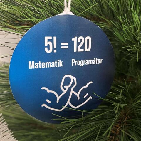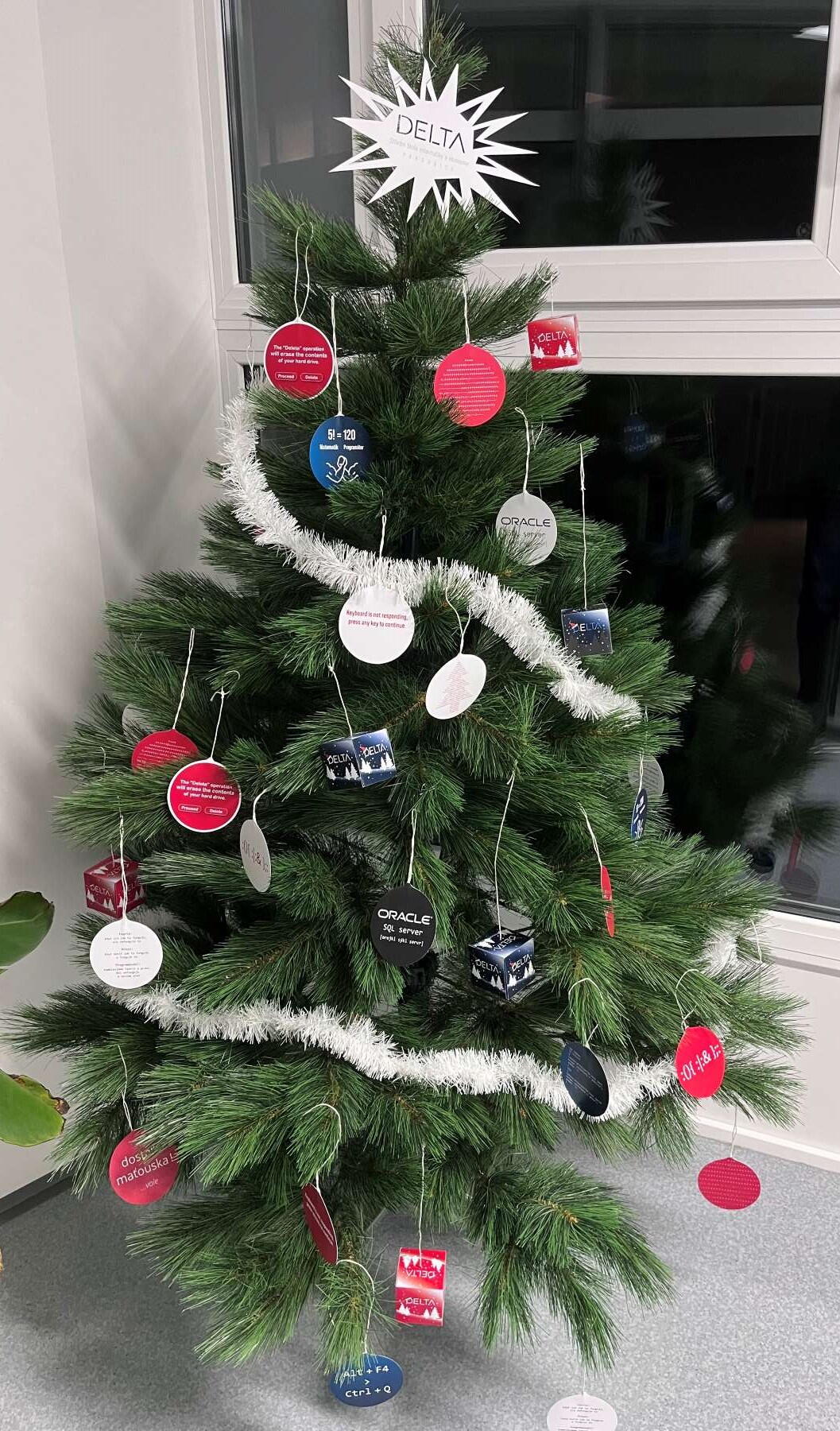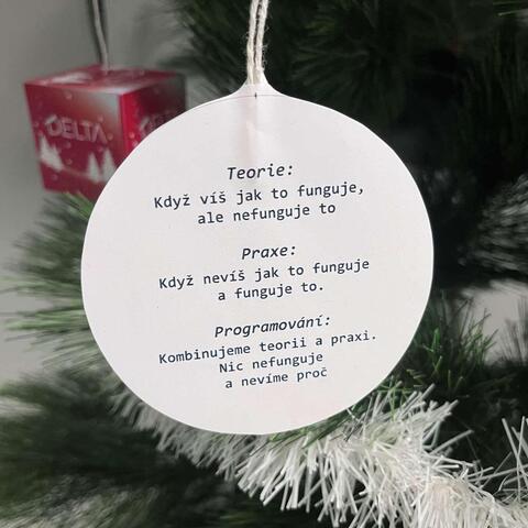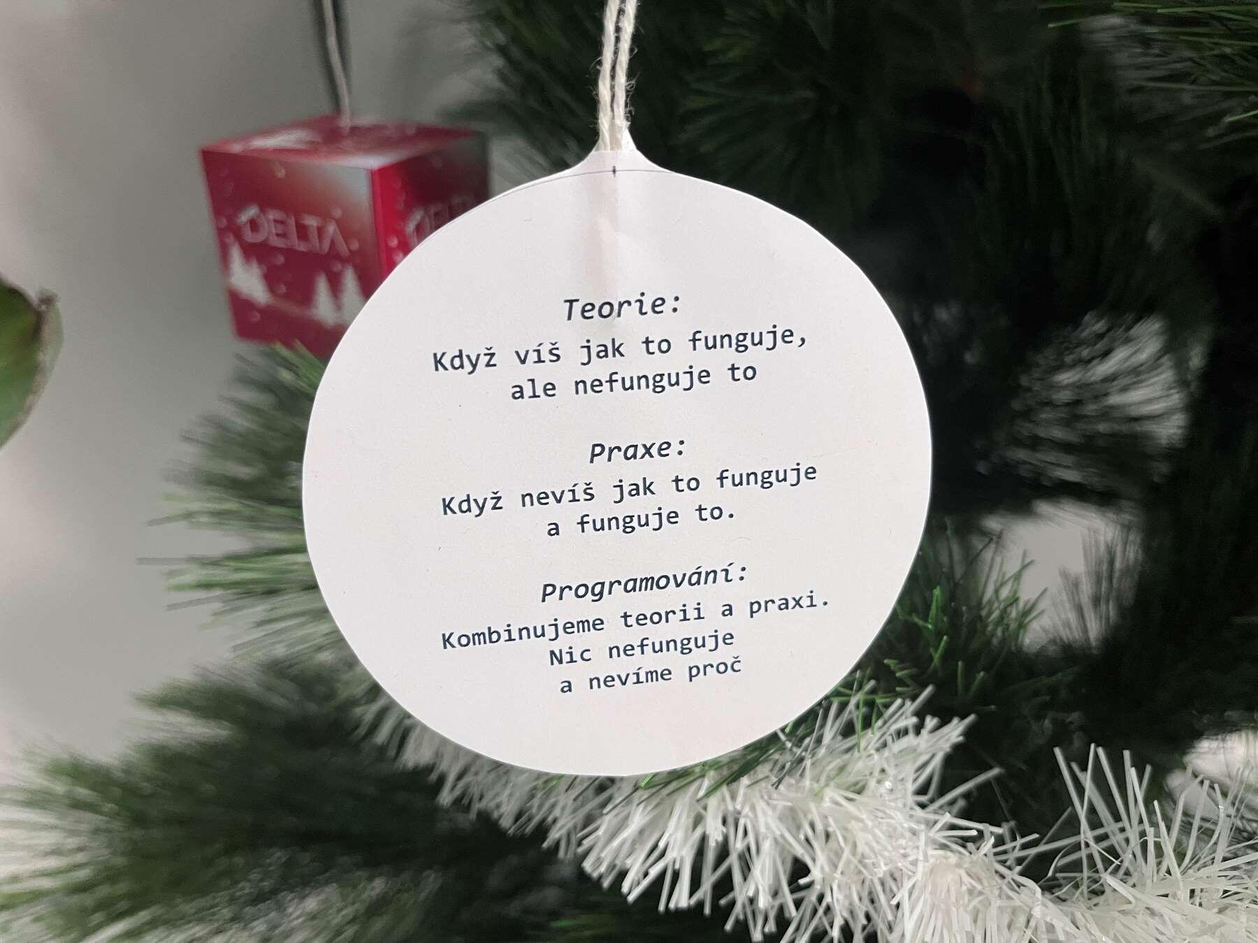 Krásné papírové ozdoby s různými programátorskými vtípky a na vrchu vyřezaná papírová hvězda s logem školy. 10 minut jsem si četl vtípky na ozdobách a měl prostě radost.