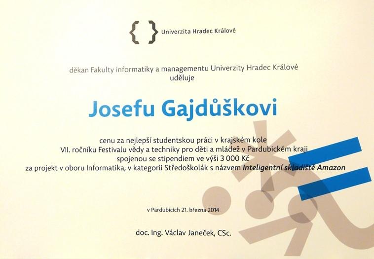 prof. Ing. Simeona Karamazova, Dr. - Obdržel cenu děkana Fakulty Informatiky managementu Univerzity Hradec Králové, doc. Ing. Václava Janečeka, CSc., za nejlepší projekt v oboru Informatika.