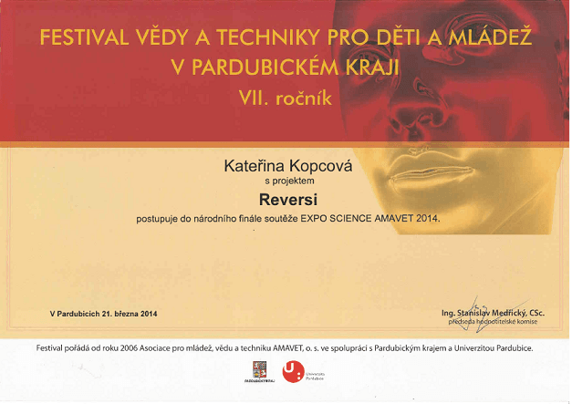 - 2 projekty postupují do národního finále EXPO SCIENCE AMAVET 2014 (Josef Gajdůšek a Kateřina Kopcová).