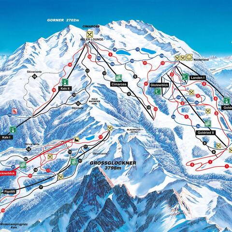 V pátek jsme si zajeli už kousek dál asi 30km do střediska Kals-Matrei. V Lienzu jsme jeli dál po hlavní podél řeky Isel přítoku Drávy. Kals-Matrei byl původně naplánovaný až na poslední den - pondělí, protože je "po cestě" domů, ale v pondělí se mělo už trochu zkazit počasí a nevěděli jsme, jestli nebudeme jezdit v mlze. Proto jsme se rozhodli, že se do Matrei podíváme za sluníčka, abychom se pak v pondělí lépe orientovali. Vyjeli jsme kabinkou do nějakých dvou tisíc a tam byla lyžovačka.