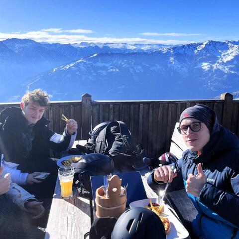 V neděli večer jsme už všechno sbalili, ráno vše nacpali do autobusu a jeli si naposledy zalyžovat do nám už známého střediska Kals-Matrei. Bylo to poprvé za celou dobu lyžáku, kdy nám nesvítilo sluníčko. Kolega ze školy z Liberce nás upozorňoval, že je tady takové difuzní světlo, kdy to mraky rozptýlí takovým způsobem, že je fakt špatně vidět. Tak jsme si to zažili na vlastní kůži. Nebyla žádná mlha, ale prostě v podstatě vůbec nebyly vidět terénní nerovnosti. Skončili jsme raději už ve dvě odpoledne. Všichni jsme byli vylyžovaní až až a nemělo cenu to trápit, abychom si ještě něco neudělali.