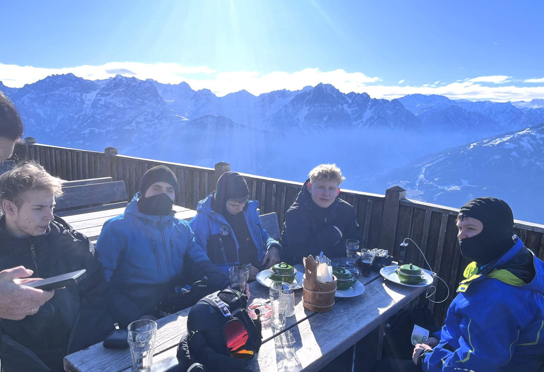 Na vyložení věcí jsme měli asi jenom 5 minut, protože na stejné místo přijíždějí skibussy a všude bylo málo místa, ale vše jsme zvládli na jedničku. Vyjeli jsme kabinkou do 2 tisíc metrů a pak ještě sedačkou o dalších 400 metrů výš. Tam byly další dva vleky. Mně osobně se toto středisko líbilo úplně nejvíc. Lyžovali jsme na vysokohorských planinách a vše bylo zalité sluncem.