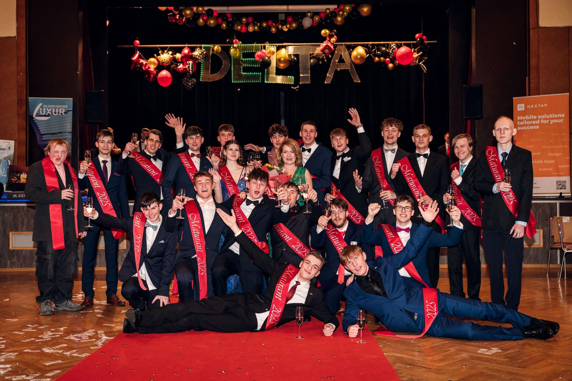 Maturák! To je ta největší šílenost, kterou mlaďoši ve svých 18ti-19ti letech zažívají. Na DELTě je prakticky celá organizaci výhradně na nich samotných. Snažit se ve výuce o cokoliv poslední týden před maturákem je naprosto marné, každý řeší jenom ples. Už jenom domluvit se ve více než 50ti lidech na společném formátu, sladit 50 názorů často zcela protichůdných je pro ně neskutečná zkušenost. Domluvit místo, hudbu a program pro stovky svých příbuzných a kamarádů, zajistit moderování, vymyslet a nacvičit půlnoční překvapení, natočit film, připravit tombolu a získat do ní peníze, nakoupit výhry,... A za to všechno zaplatit desítky tisíc korun, prodat lístky a doufat, že to vyjde. V 19ti letech? To je zkušenost jako hrom.