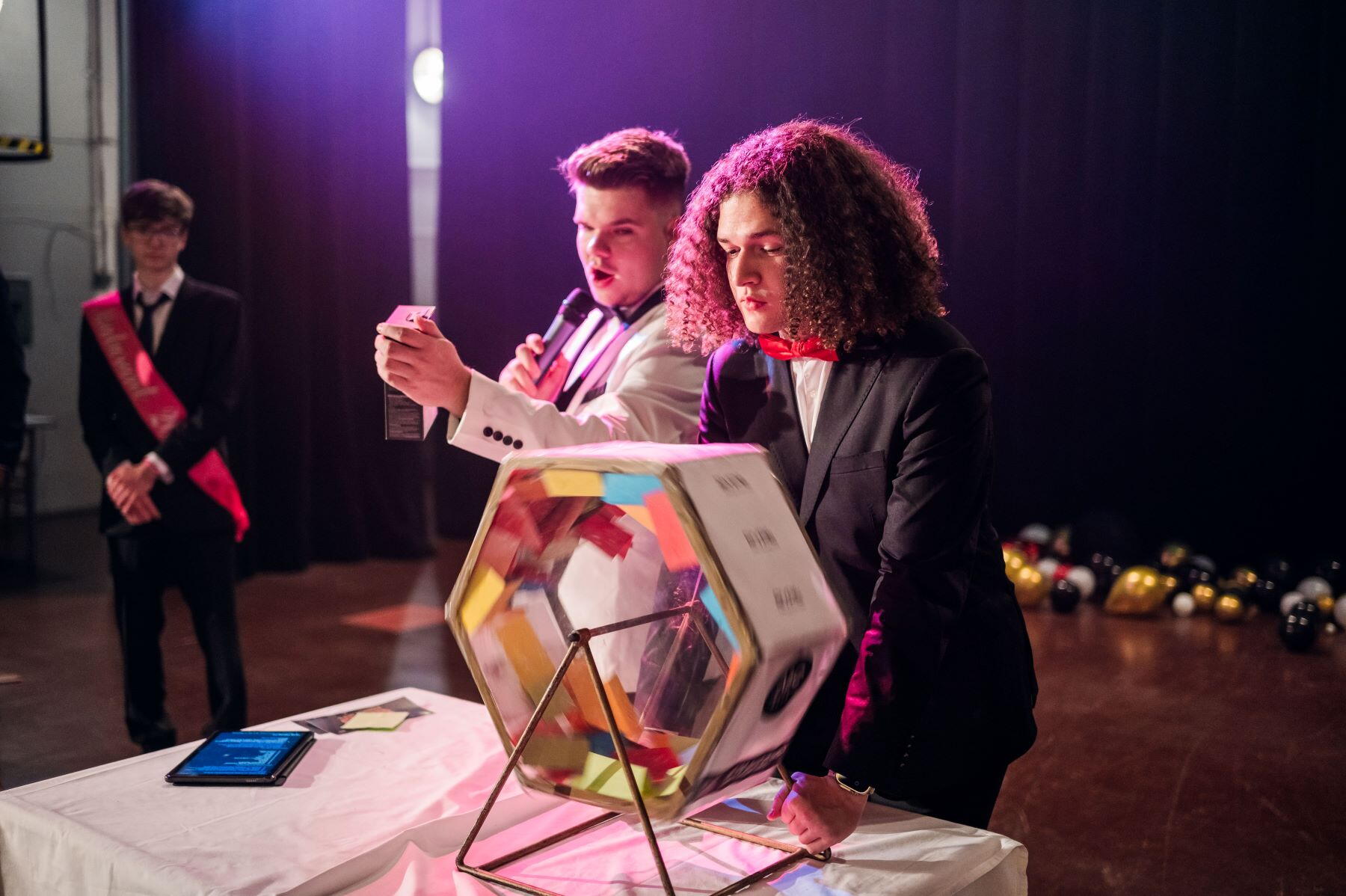 Obrovské poděkování patří všem, kteří se na celé organizaci maturitního plesu podíleli. Raději nebudu děkovat jmenovitě, abych na někoho nezapomněl, přesto dvě jména však musím rozhodně zmínit. Díky Štěpánu Dudychovi, na kterém byla organizace plesu asi nejvíce a loňskému absolventovi Vojtovi Volfovi, který se ujal moderace celého večera. Dámy a pánové, jste velcí borci. Díky vám jsme si to všichni snad jak se patří užili.