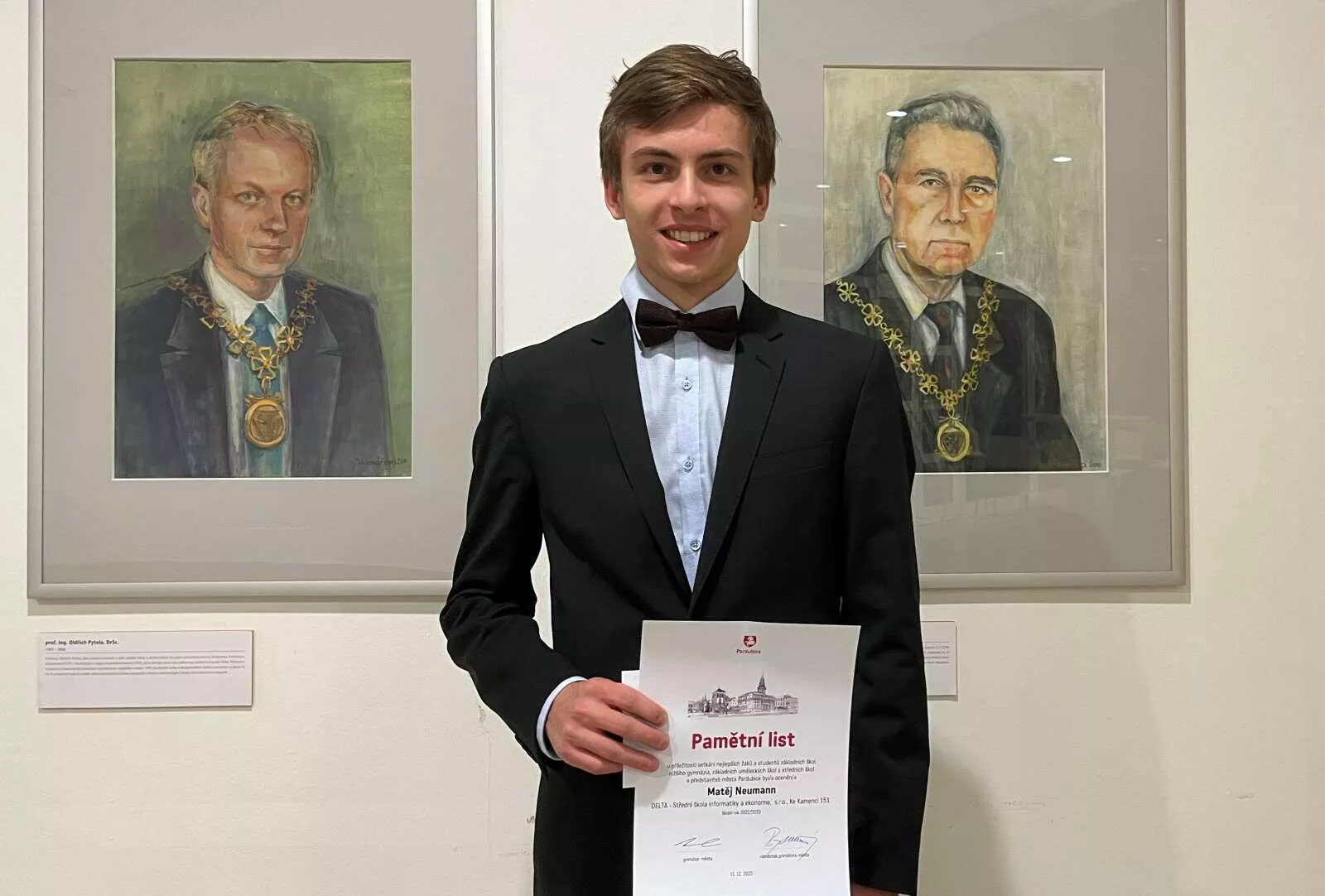 Letos toto ocenění získali 3 studenti soukromé střední školy DELTA - jmenovitě Matěj Neumann a dvojice Jakub Kacálek a Jan Volhejn.