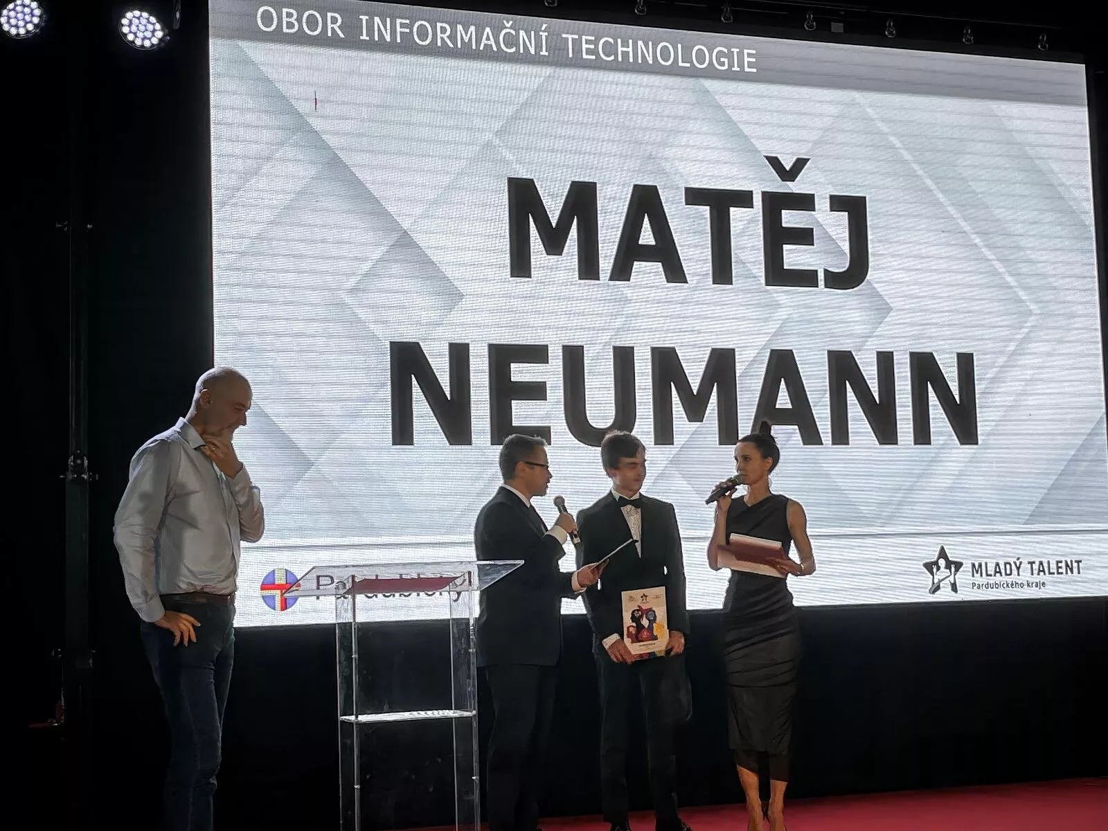 Matěje Neumanna letos ocenil i Magistrát města Pardubice, což si musel jako Hradečák neskonale užít. :-) Magistrát letos opět přitvrdil kritéria pro oceňování. Dotáhl to až k takovému extrému, že v kategorii středoškoláků oceňoval pouze VÍTĚZE CELOSTÁTNÍCH kol.