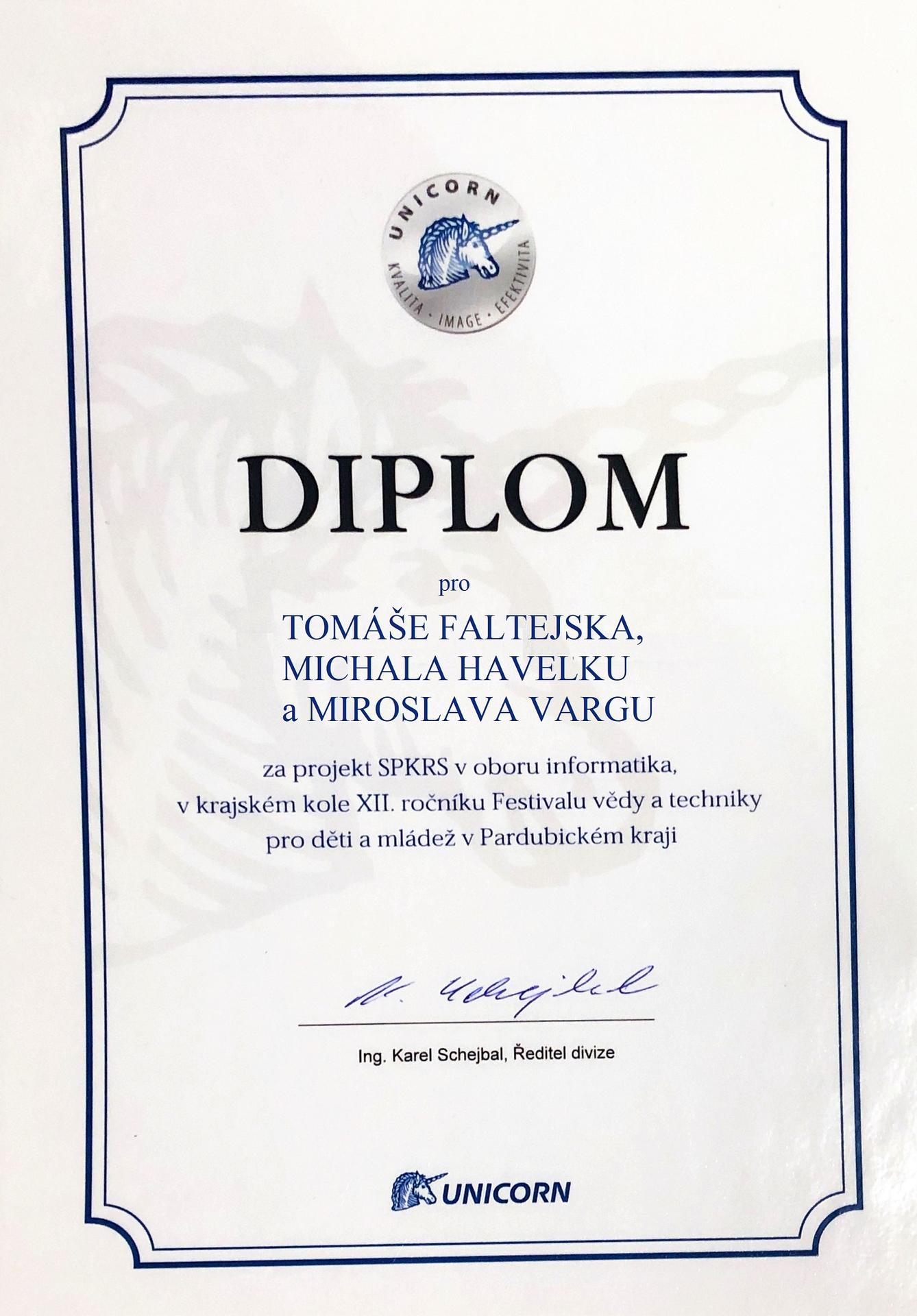 Navíc získali zvláštní cenu největšího českého výrobce software Unicorn. Ředitel divize z královéhradecké pobočky Karel Schejbal při předávání ceny pěl chválu na jejich práci asi minutu.