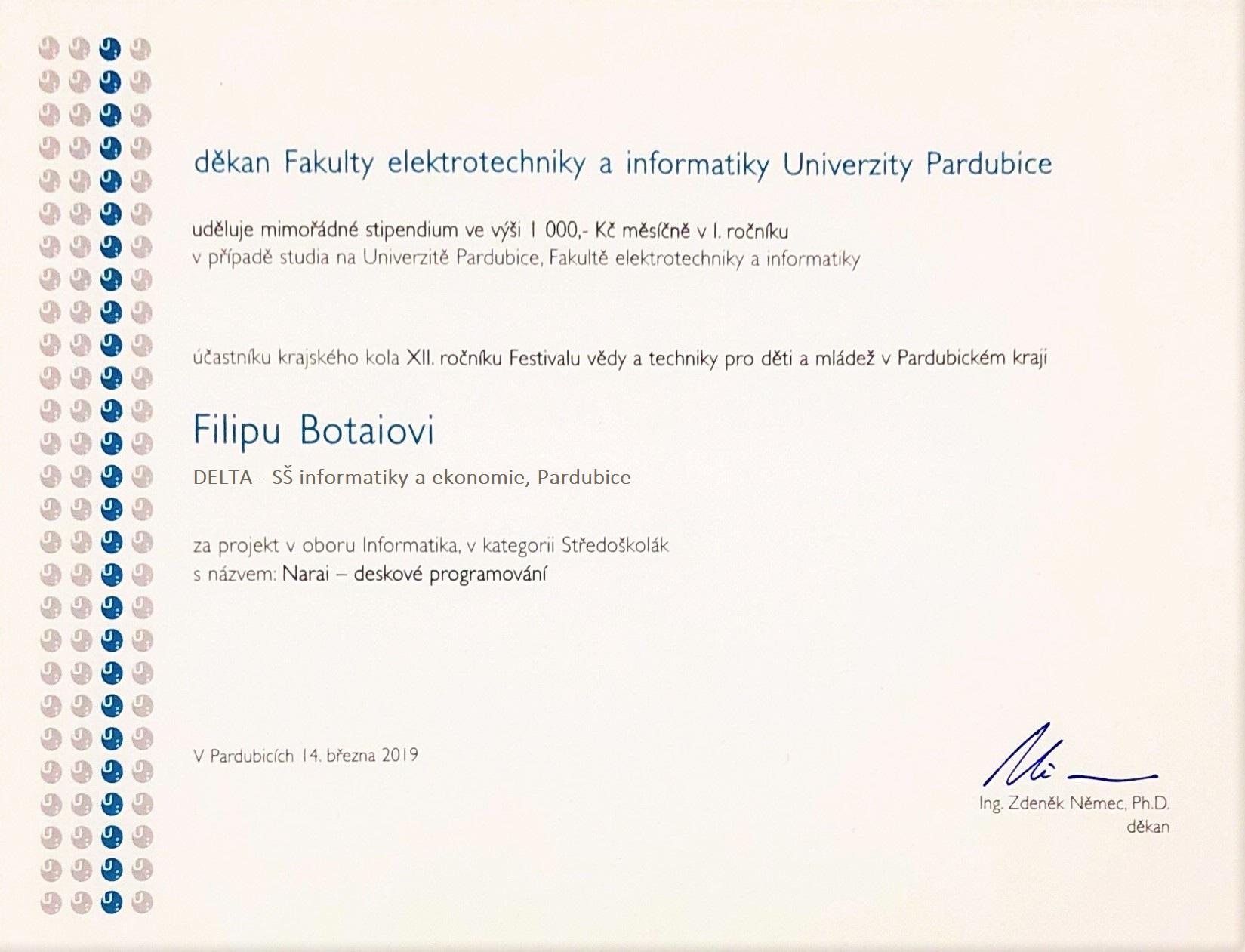 - zvláštní cena děkana Fakulty elektrotechniky a informatiky Univerzity Pardubice,
