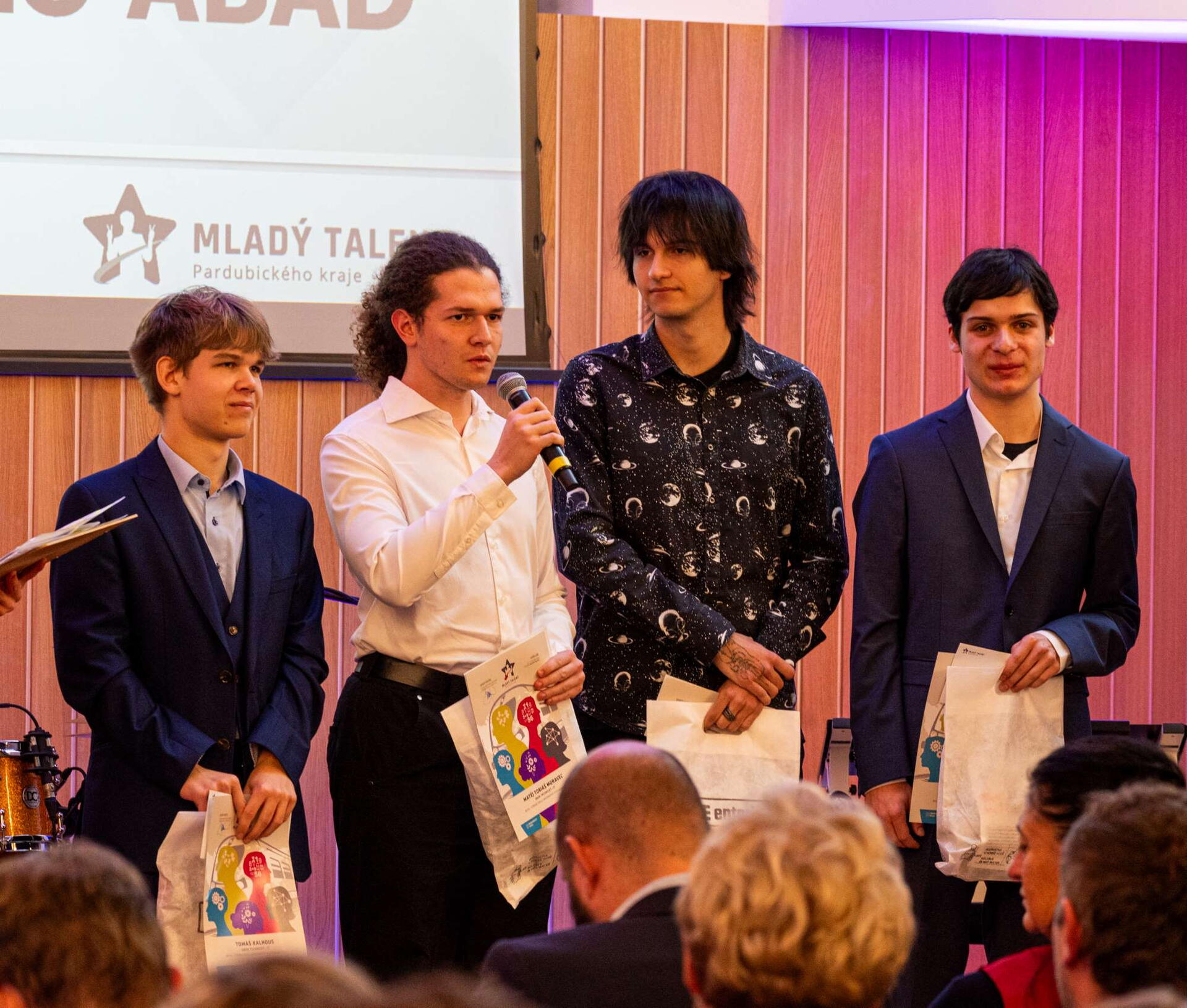 Pardubice, 19.11.2024: Diego Alejandro Portillo Abad, Michal Vaniš, Tomáš Kalhous a Matěj Tobiáš Moravec získali ocenění Mladý talent Pardubického kraje.