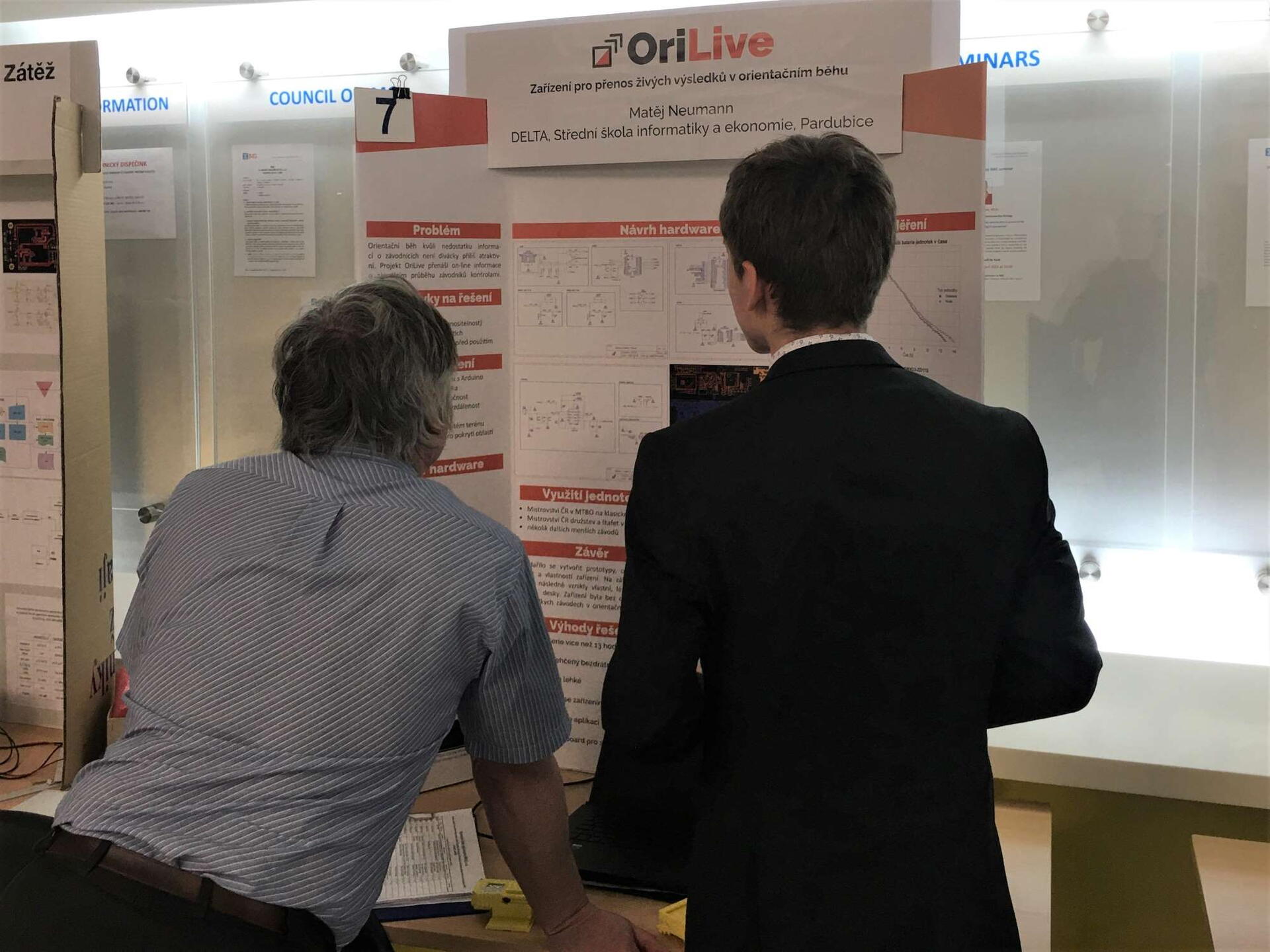 Velice mne překvapilo, když jsem ve finále potkal dalšího našeho studenta Davida Mence, který do finále postoupil jako spoluautor projektu "Laboratorní elektronická zátěž". Hlavním autorem byl jeho bratr Dominik, který je studentem SPŠE a vytvářel veškerou elektroniku. David je sice u nás teprve v prvním ročníku, ale je zapojen do talentového programu pro mladičké programátory DELTA TopGun a pomáhal staršímu bratrovi celý systém oživit. - Jen tak dál a už se těšíme za 3 roky na jeho vlastní maturitní projekt.