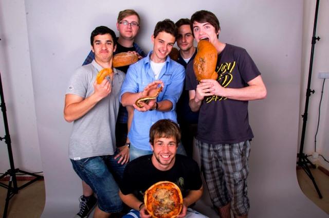 Studenti si s pečivem zapózovali ve fotoateliéru eBRÁNY. Fotila je jejich spolužačka Lucka.