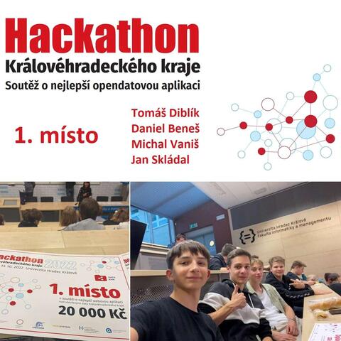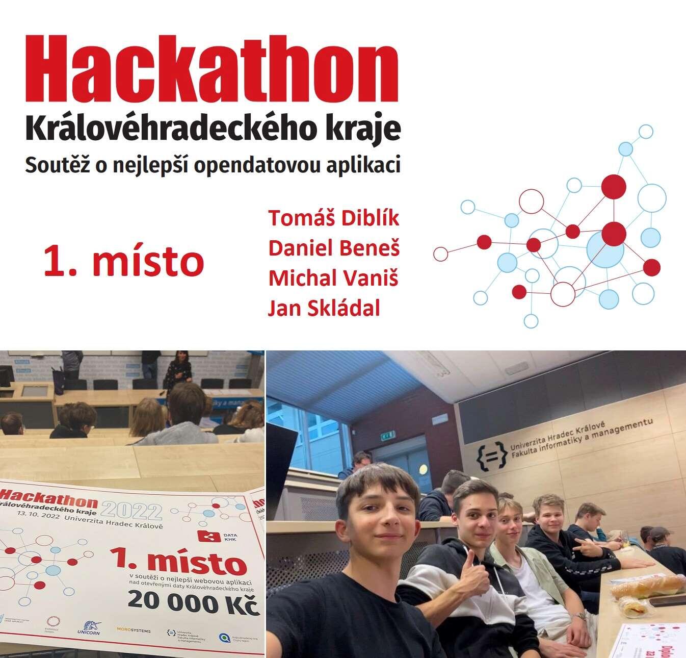 13. října 2022, Hradec Králové: Účastníci programátorské soutěže Hackathon Královéhradeckého kraje soupeřili 13. října v prostorách Univerzity Hradec Králové ve vytváření nejlepšího softwarového projektu pro otevřená data Krajského úřadu Královéhradeckého kraje. Zvítězil tým studentů 3. ročníku z pardubické DELTY – Střední školy informatiky a ekonomie ve složení: Tomáš Diblík, Daniel Beneš, Michal Vaniš a Jan Skládal s aplikací RoadMapper informující o stavu povrchu silnic druhé a třetí třídy nebo jejich plánovaných opravách na území regionu.