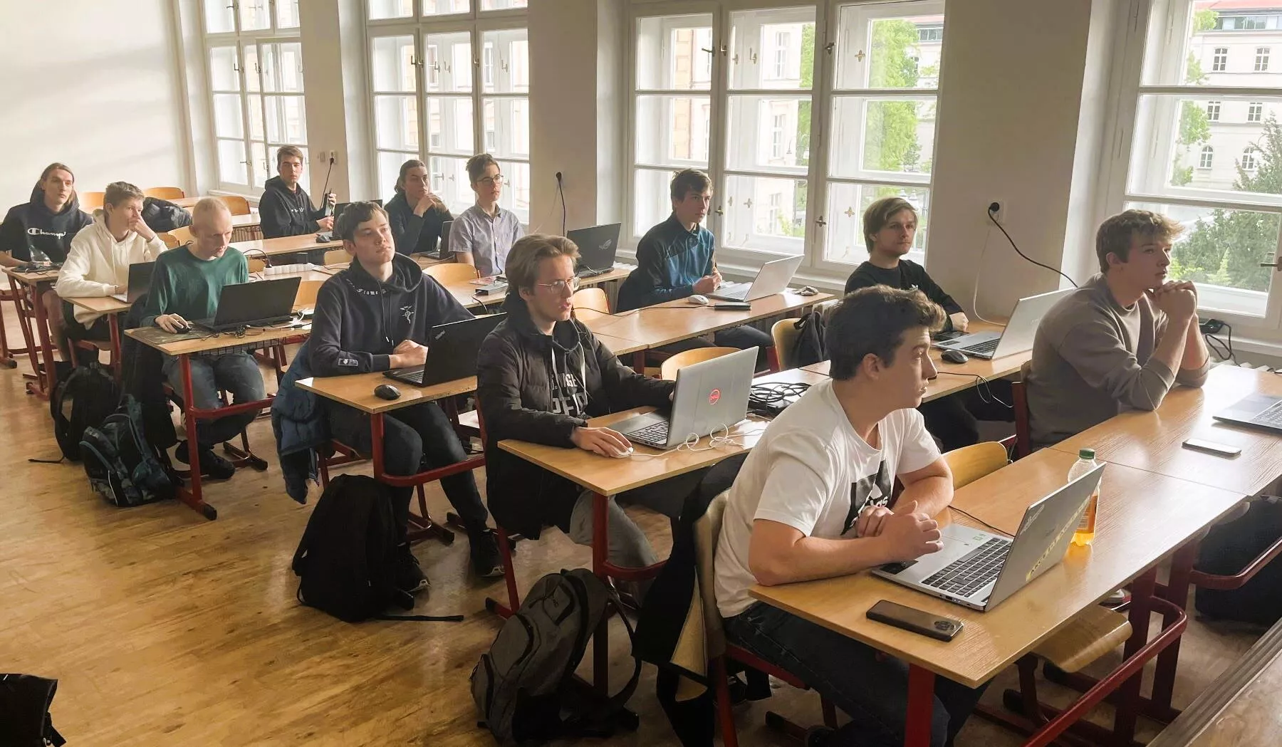 18.4.2024, Pardubice: Letošní krajského kolo Soutěže v programování MŠMT se proměnilo v "souboj" týmů dvou škol. 10 nejlepších programátorů ze SPŠE Pardubice se postavilo proti desítce nejlepších ze Soukromé střední školy informatiky a ekonomie DELTA. Porota byla také vyvážená: 4 učitelé ze SPŠE a 4 z DELTY.