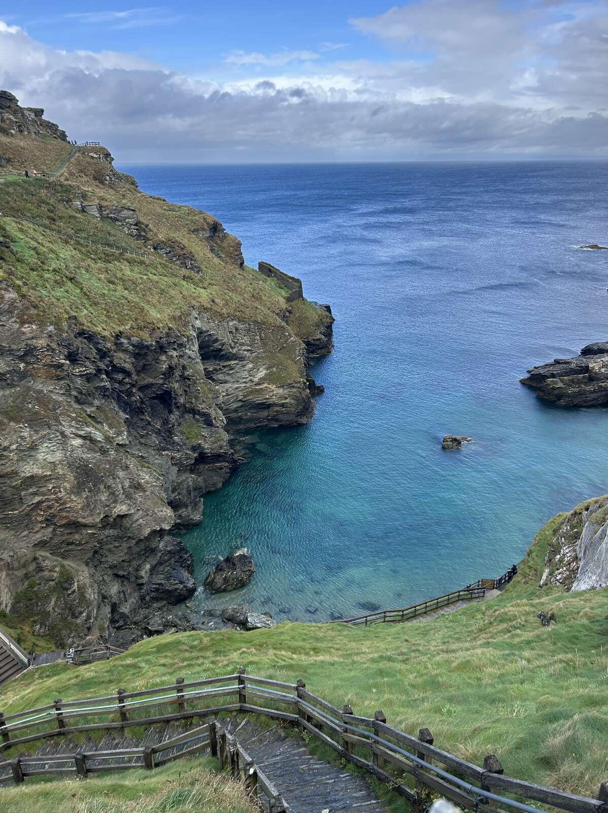 Další den bylo nutné operativně změnit program, protože anglické počasí ukázalo svou odvrácenou tvář a pro silný vítr a liják nám byla zrušena lodní přeprava na ostrov St. Michael´s . Takže po delším přejezdu jsme mohli obdivovat zříceninu hradu Tintangel, která se tyčila nad oceánem a působila tajemně a majestátně díky okolní přírodě i spojení s legendami o králi Artušovi.